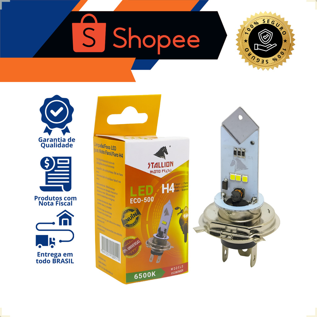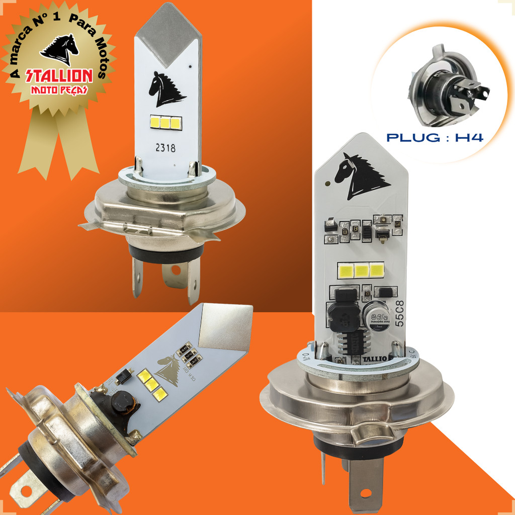 Farol de Moto Led H4 Stallion Eco 6500K Cavalinho Super Branco Universal Corrente Contínua/Alternada