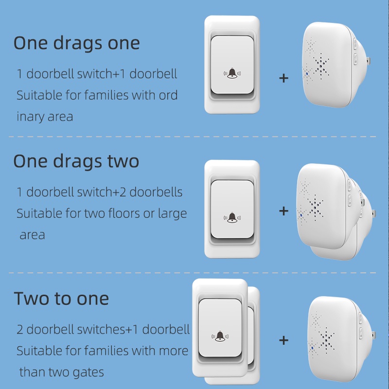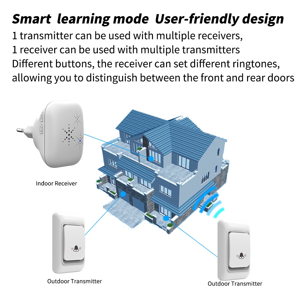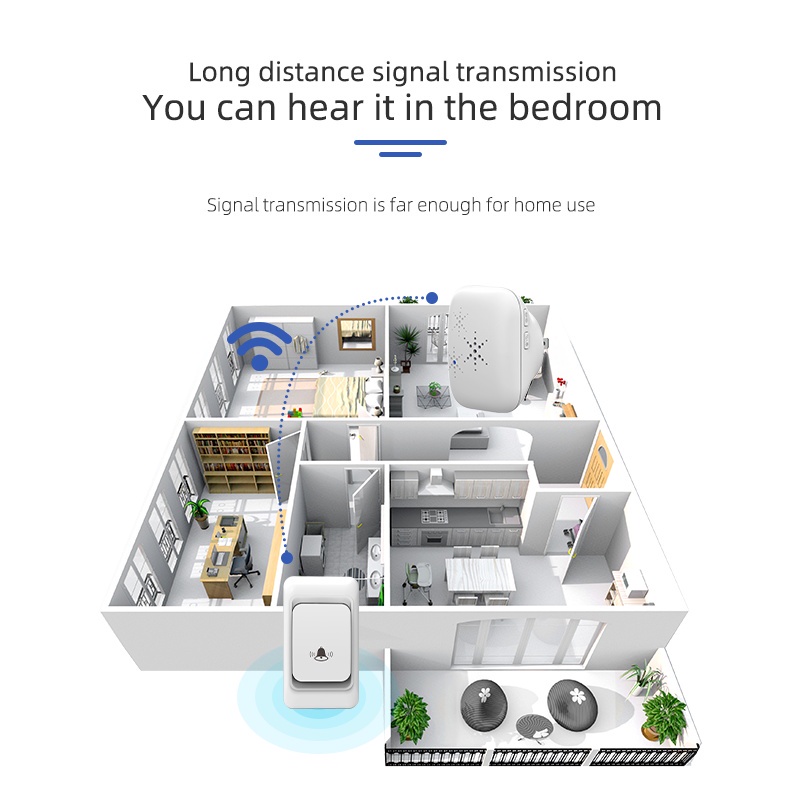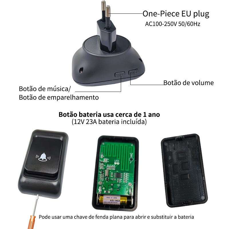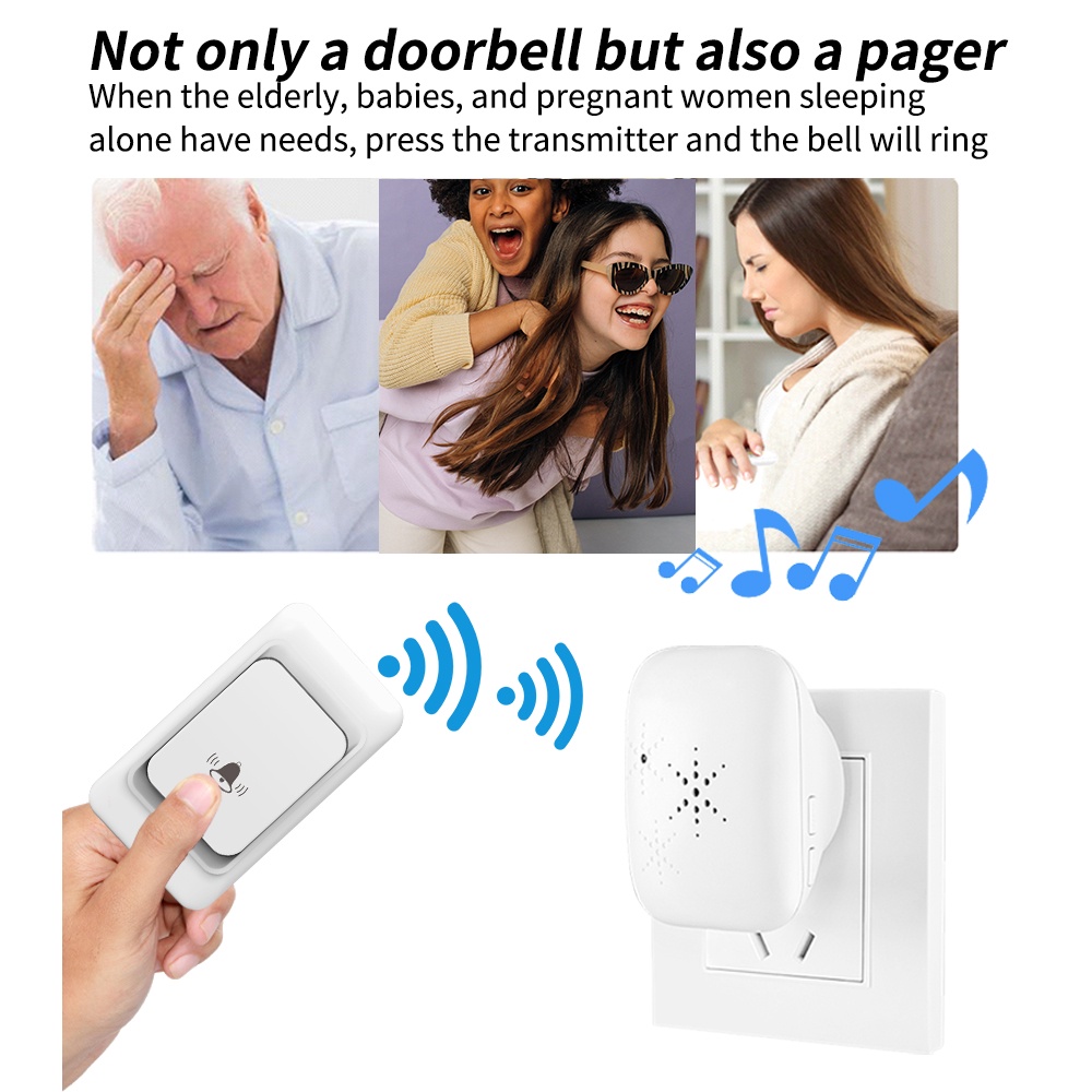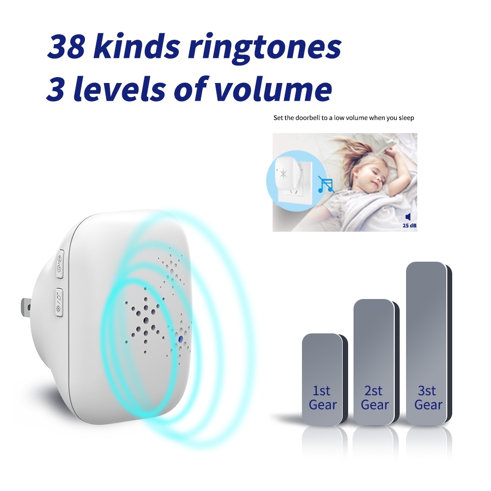 Campainha Sem Fio Campainha Residencial 300M Alcance 38 chime EU Plugue