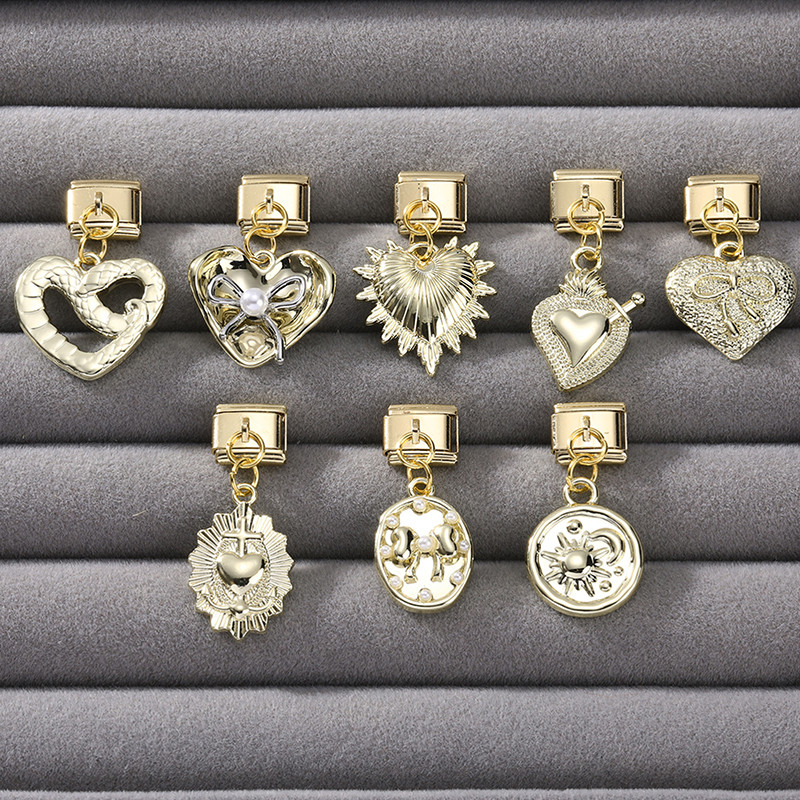Design Dourado 100 Peças Amuletos Adequados Para Fazer Você Mesmo Pulseira Modular Italiana Links De Aço De 9 Mm
