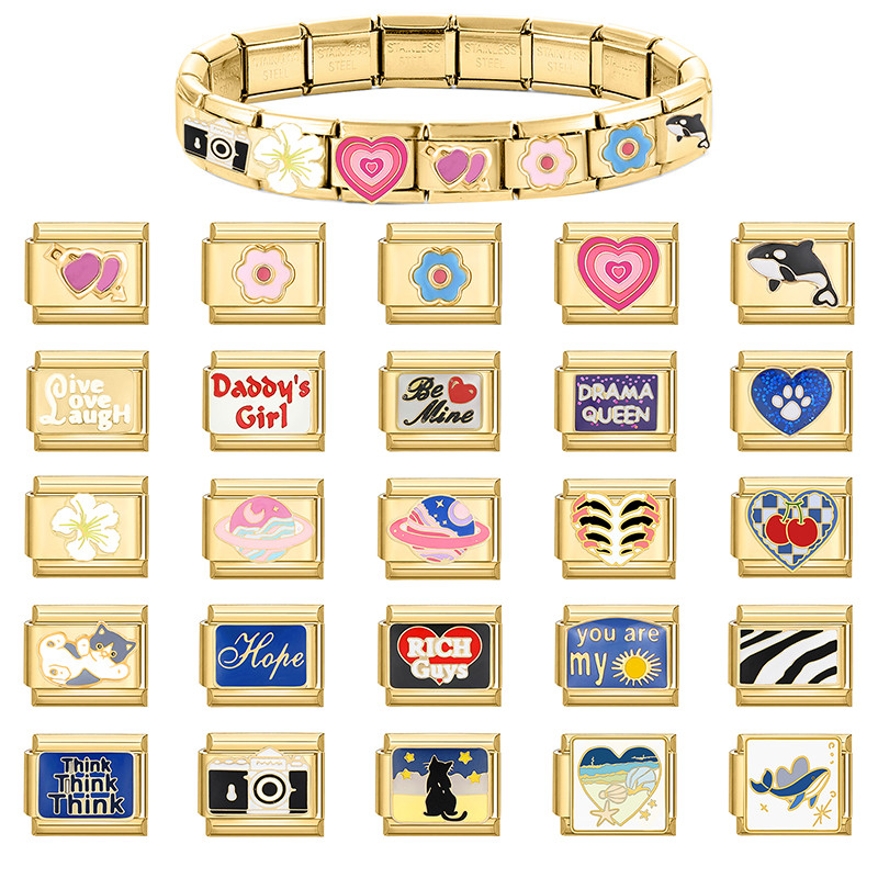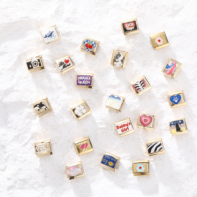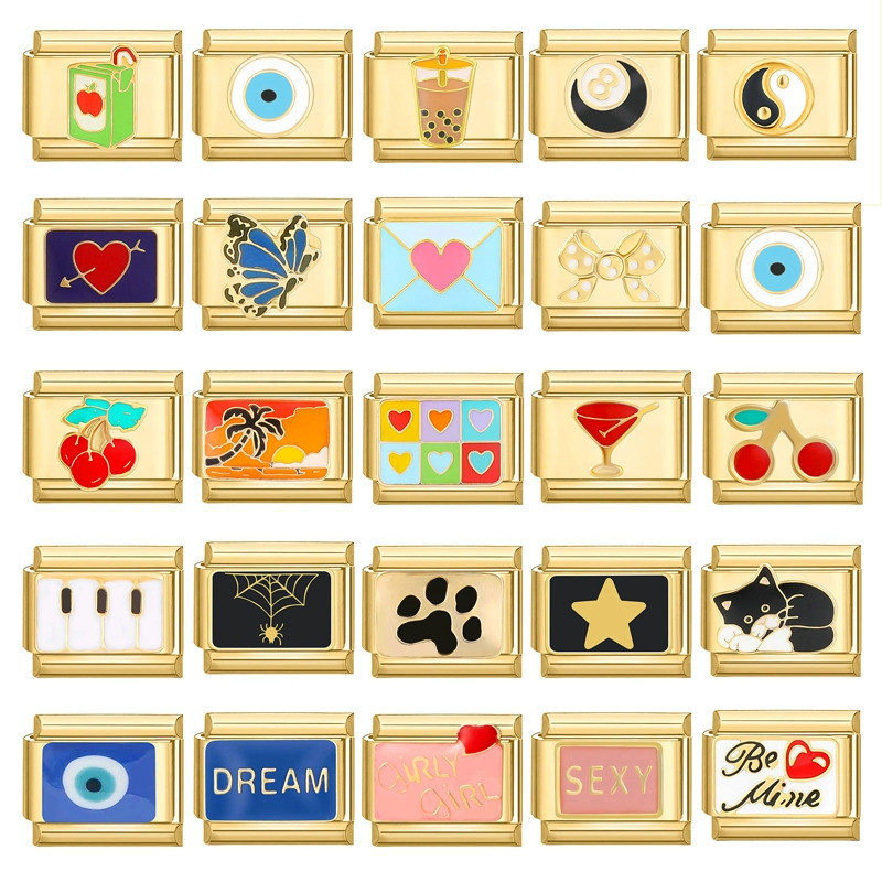 100 Amuletos Vintage Dourados Para Pulseira Modular Italiana , Links , Faça Você Mesmo , De Aço De 9 Mm