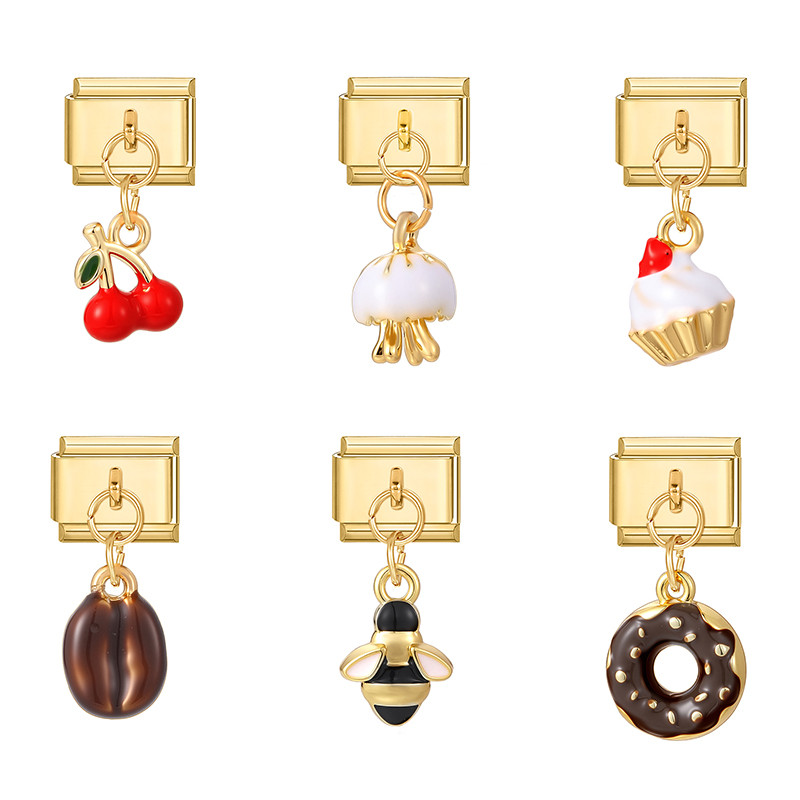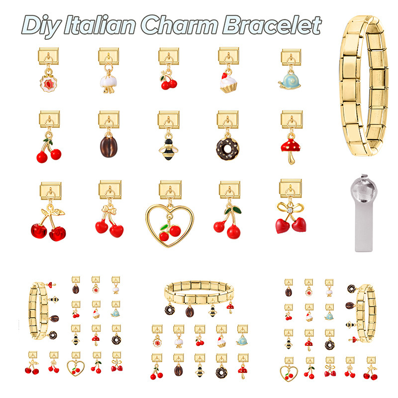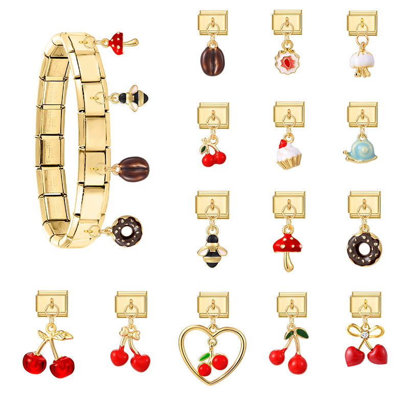 Pulseira Italiana Cereja Vermelha , Módulos De Aço Inoxidável , 9mm , Faça Você Mesmo , Pingente De Joias , Lua , Estrel