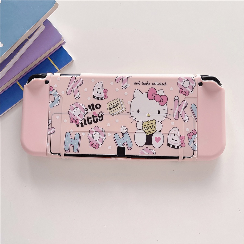 Nintendo Switch Caso OLED Animação Tema Bonito " Olá KT Gato " Agradável TPU Console Do Jogo Alça Protector Capa Mole