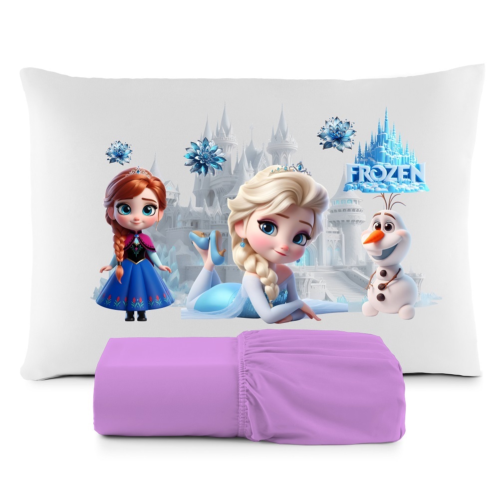 JOGO DE LENÇOL SOLTEIRO INFANTIL FROZEN, ELSA E ANA QUARTO MENINA FRONHA TRAVESSEIRO 2 PEÇAS