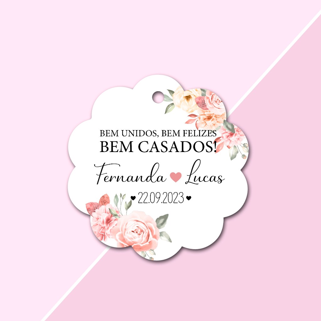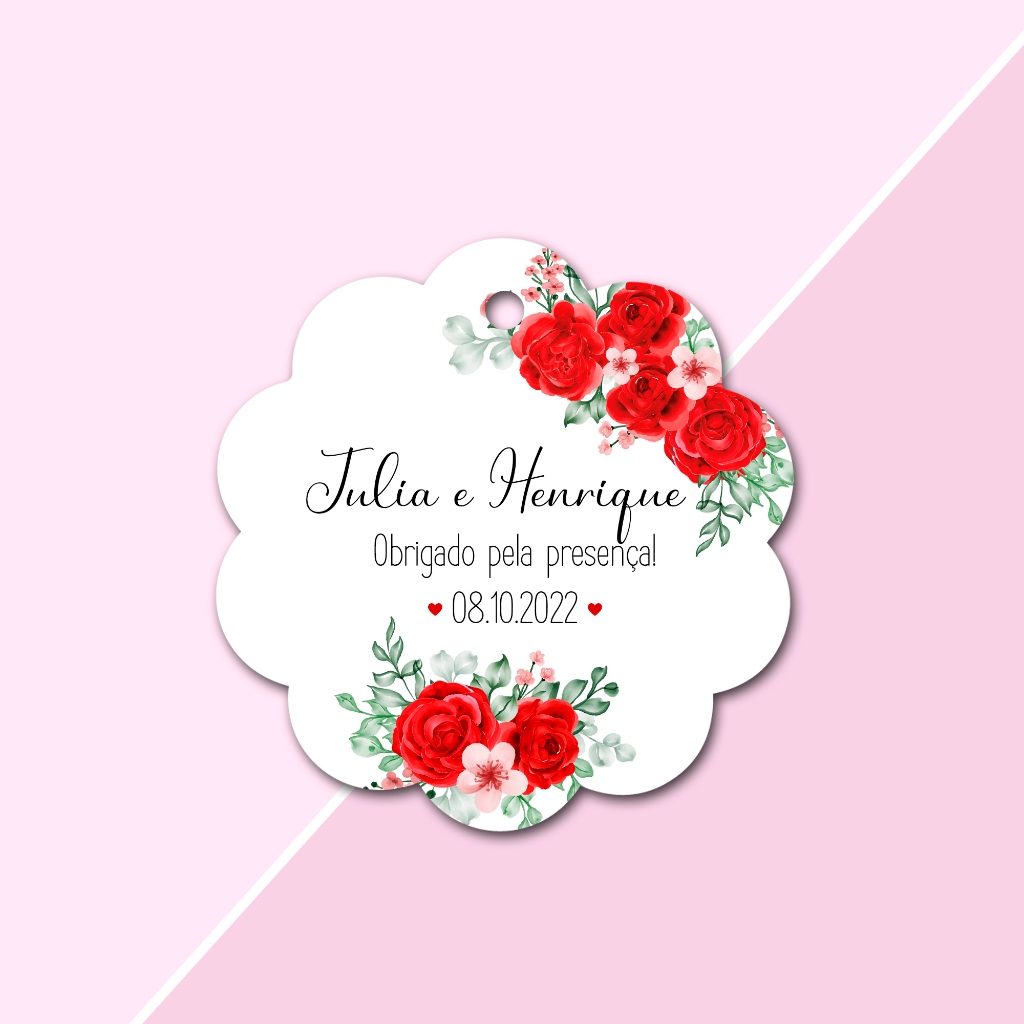 20 Tags Personalizadas Floral Lembrancinha para Casamento, Noivado e Chá de Cozinha