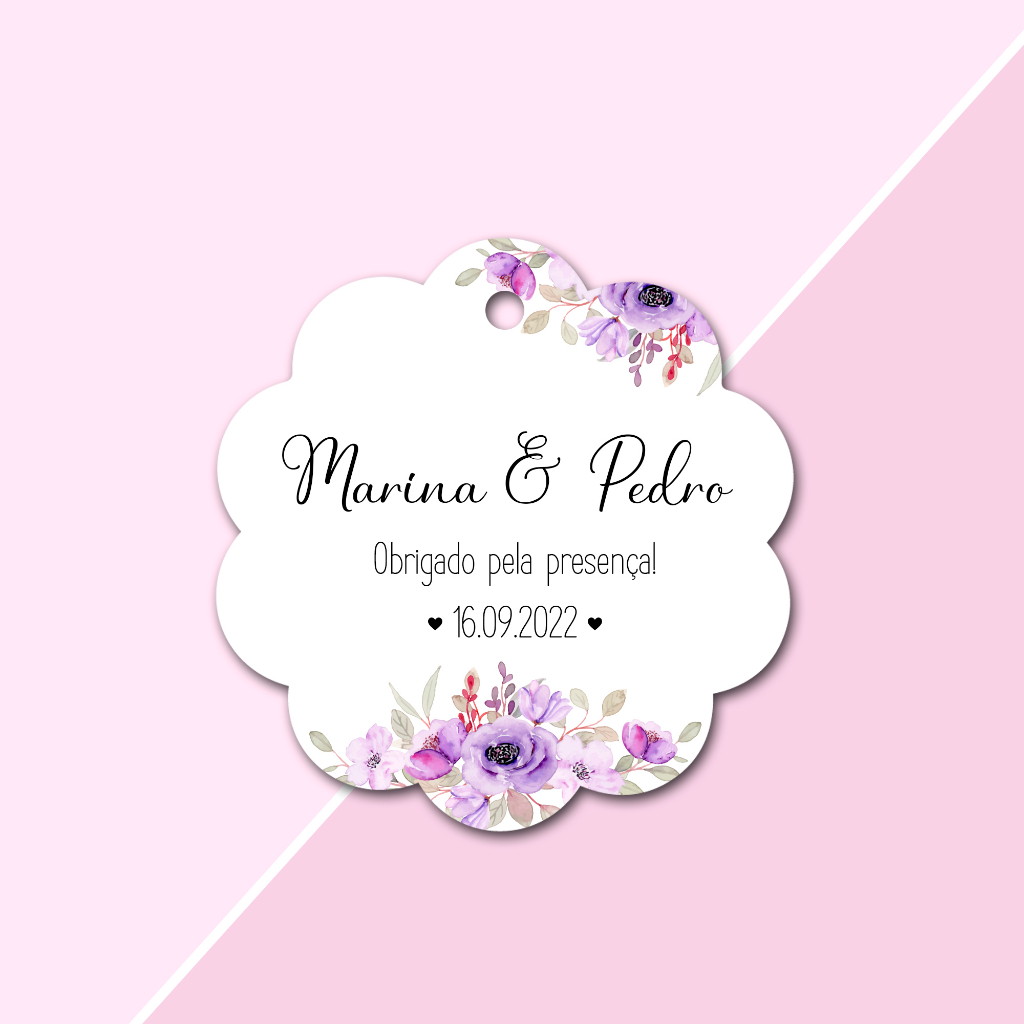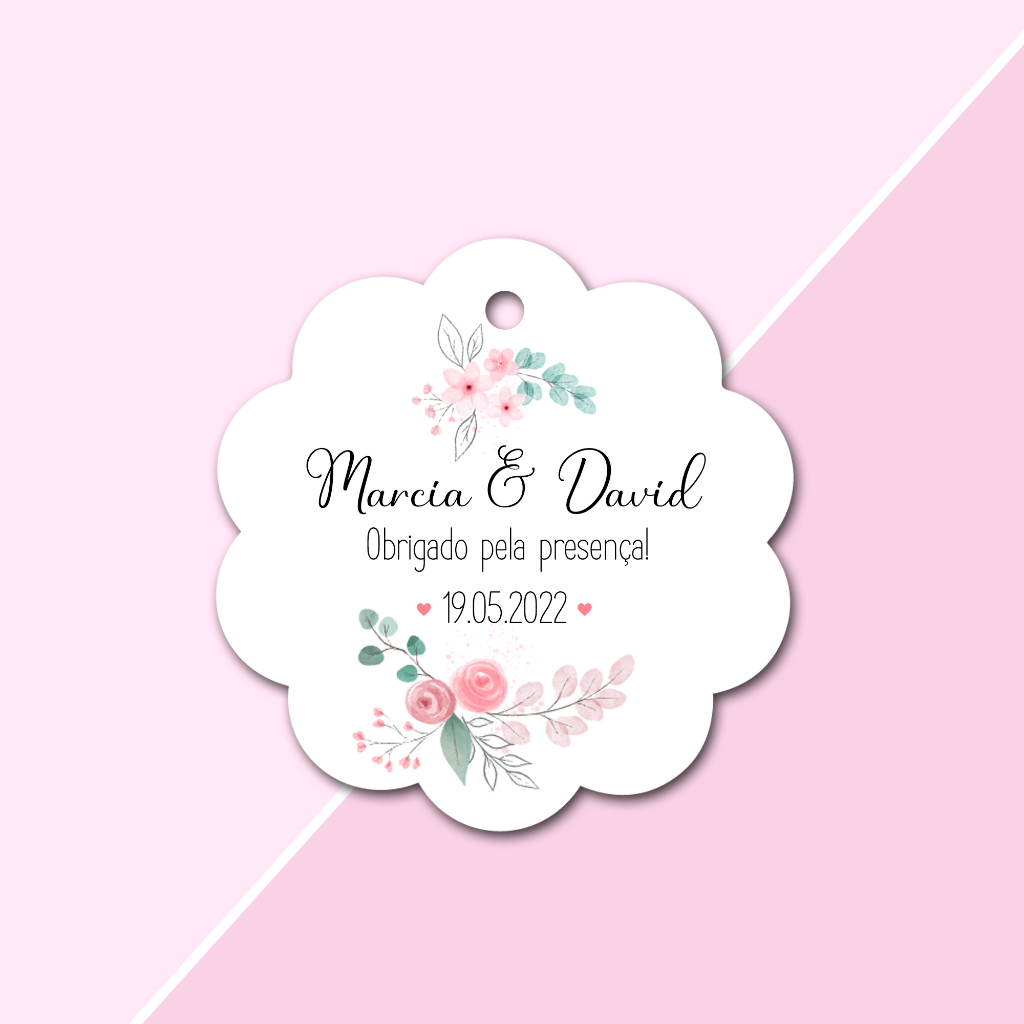 170 Tags Personalizadas Formato Flor tamanho 4x4cm Lembrancinha para Casamento, Noivado e Chá de Cozinha