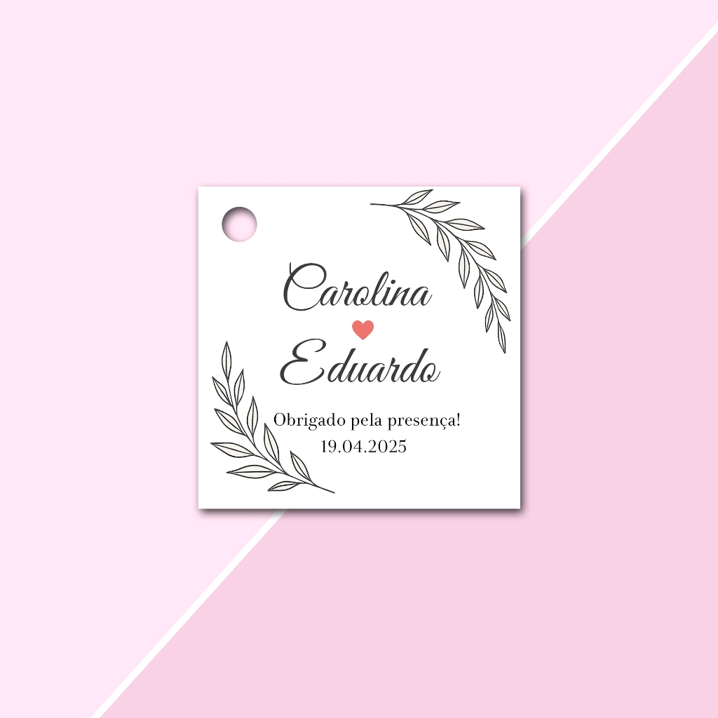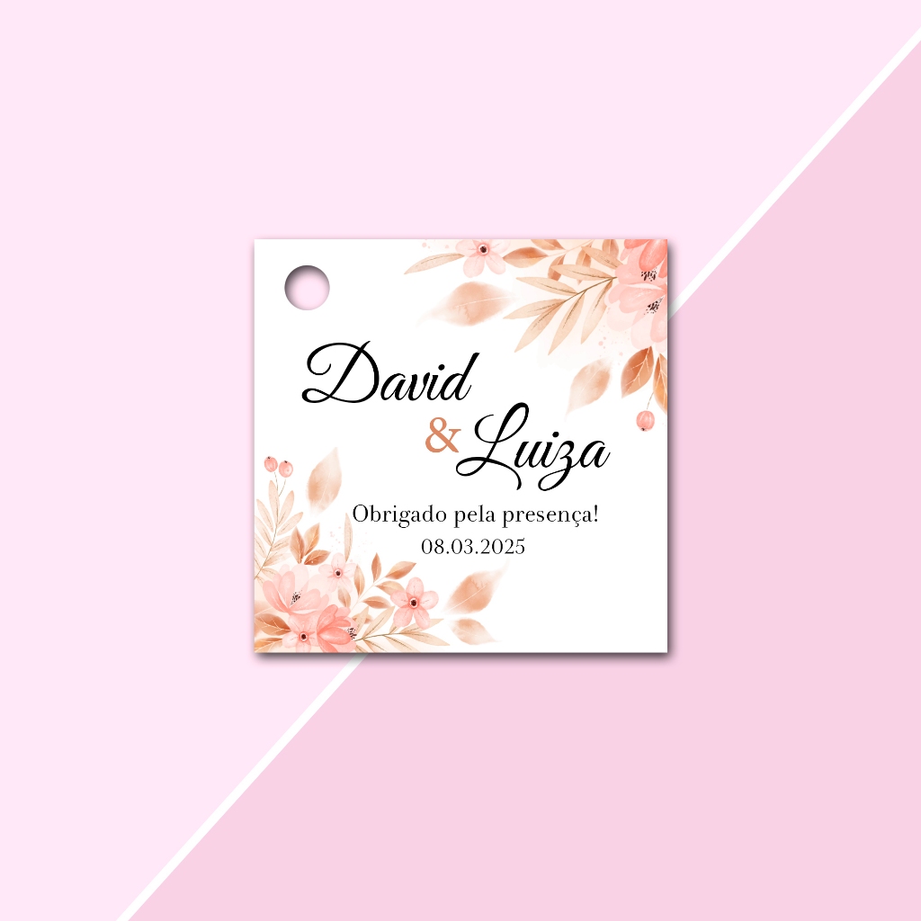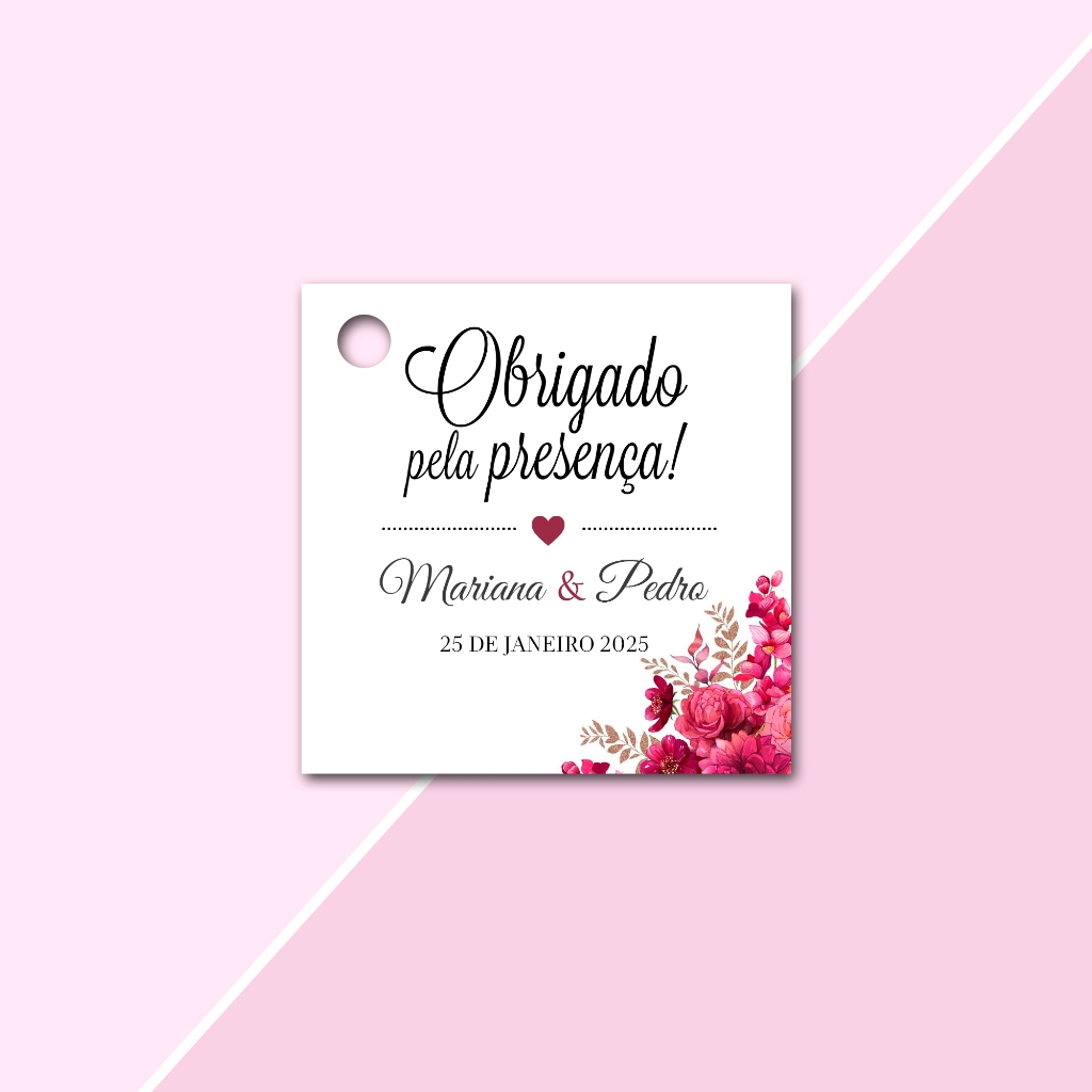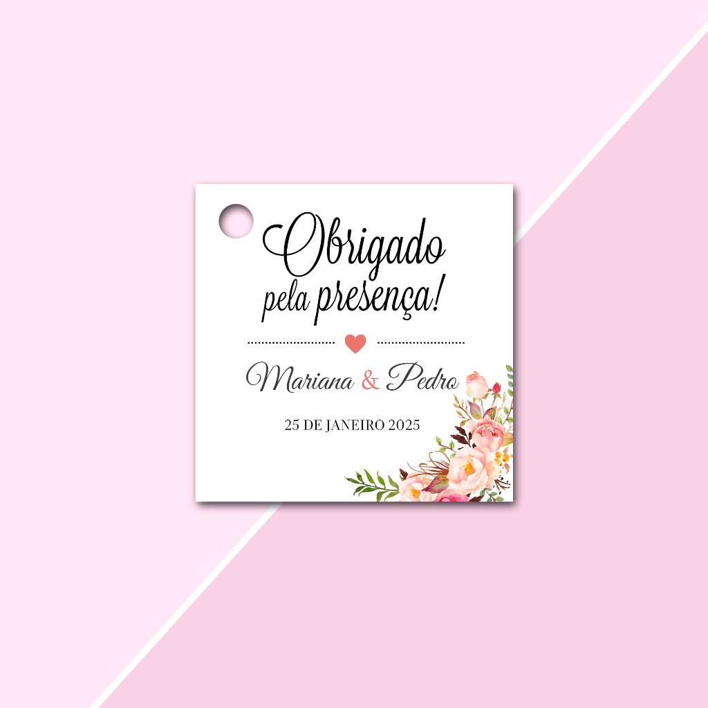 Tags Personalizadas Formato Quadrada 4,5x4,5cm para lembrancinhas de Casamento, Noivado e Chá de Cozinha, aniversário