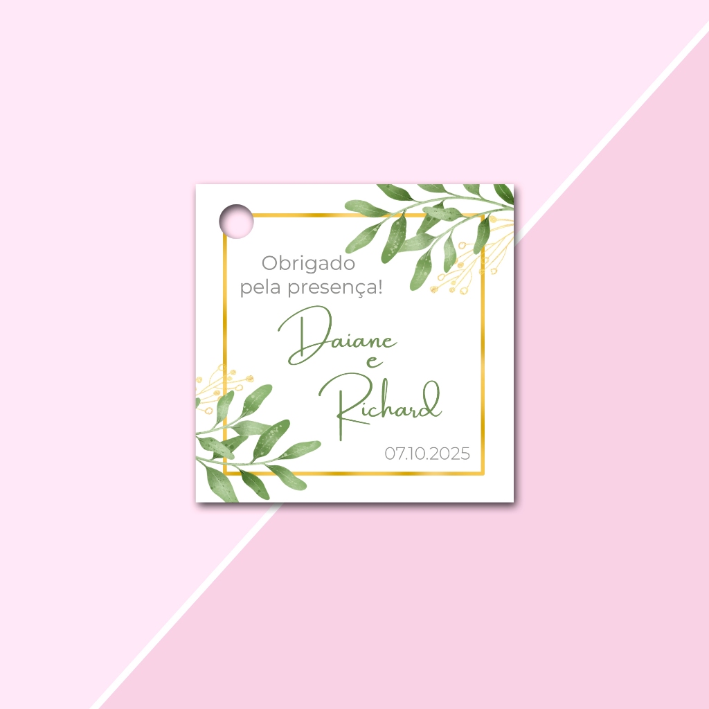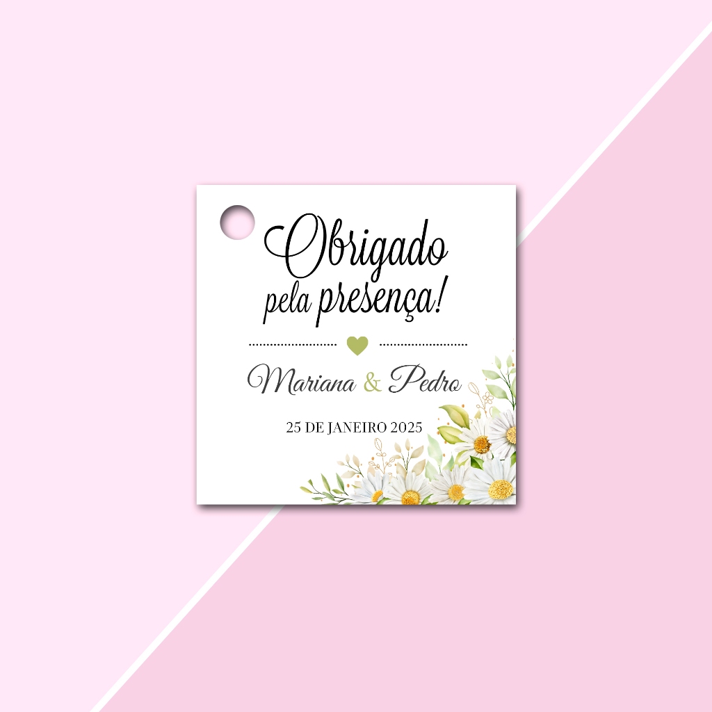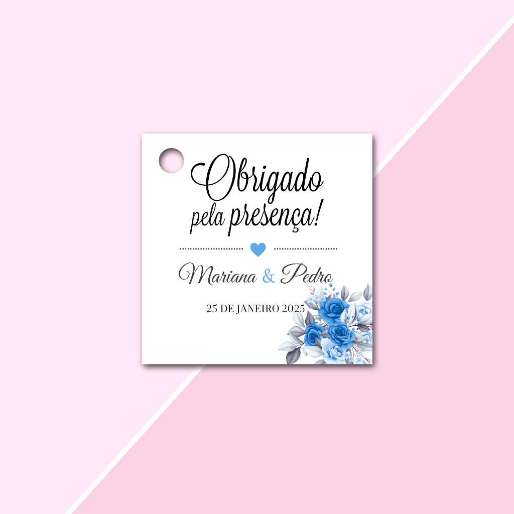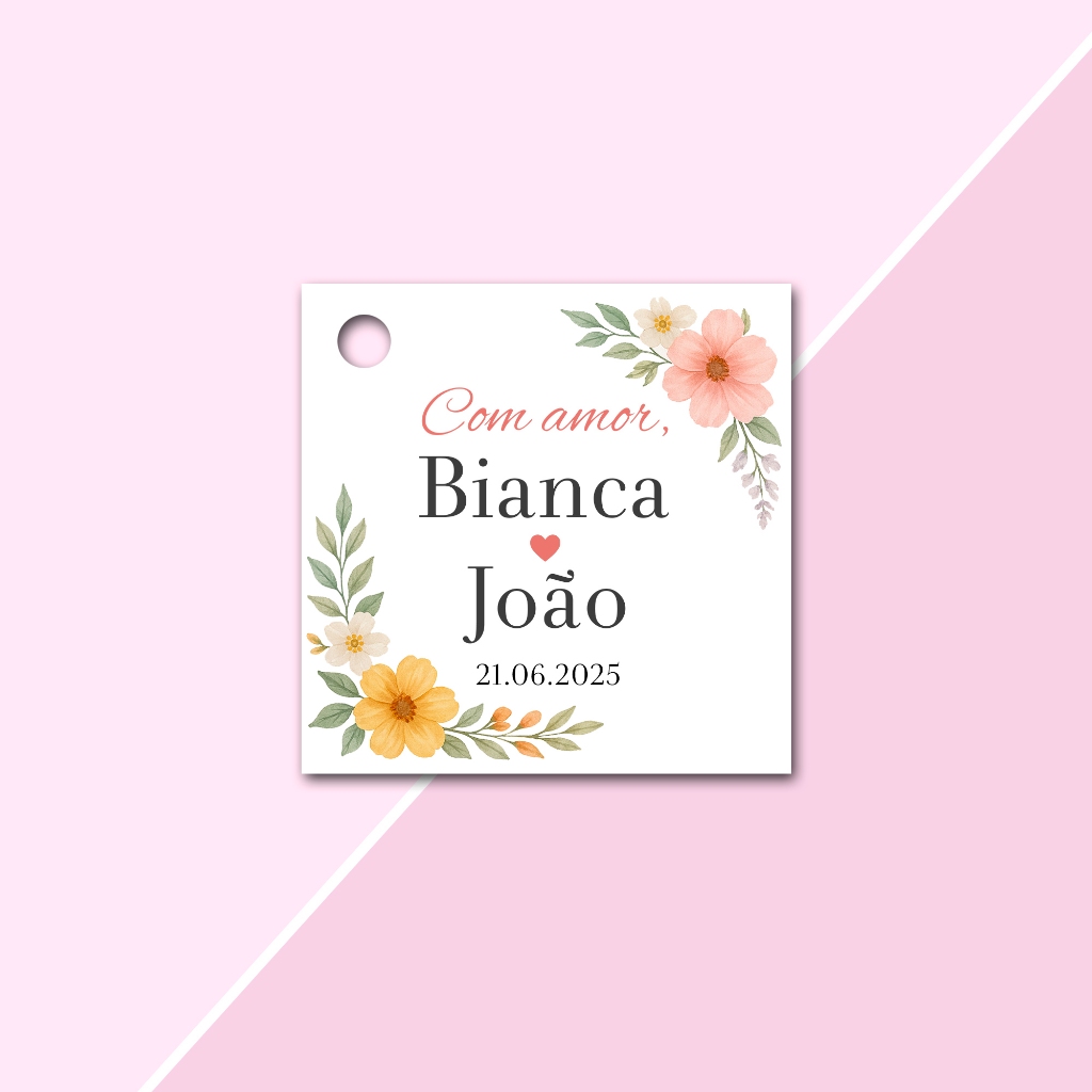 Tags Personalizadas Formato Quadrada 4,5x4,5cm para lembrancinhas de Casamento, Noivado e Chá de Cozinha, aniversário