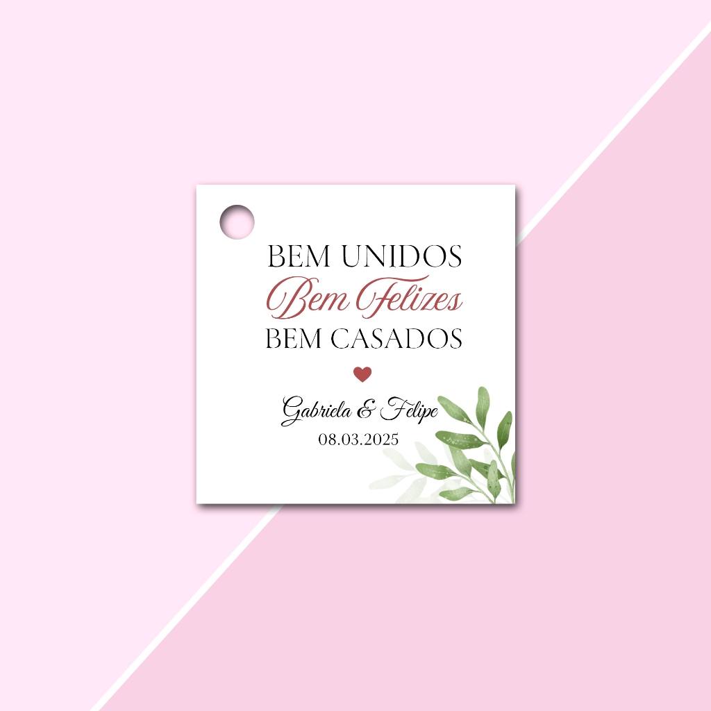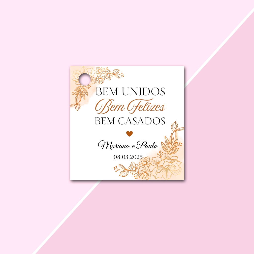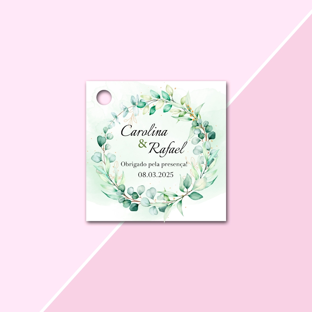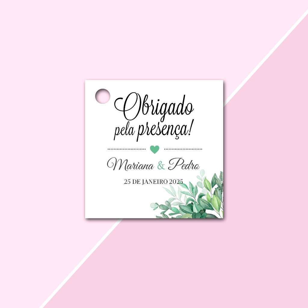 Tags Personalizadas Formato Quadrada 4,5x4,5cm para lembrancinhas de Casamento, Noivado e Chá de Cozinha, aniversário