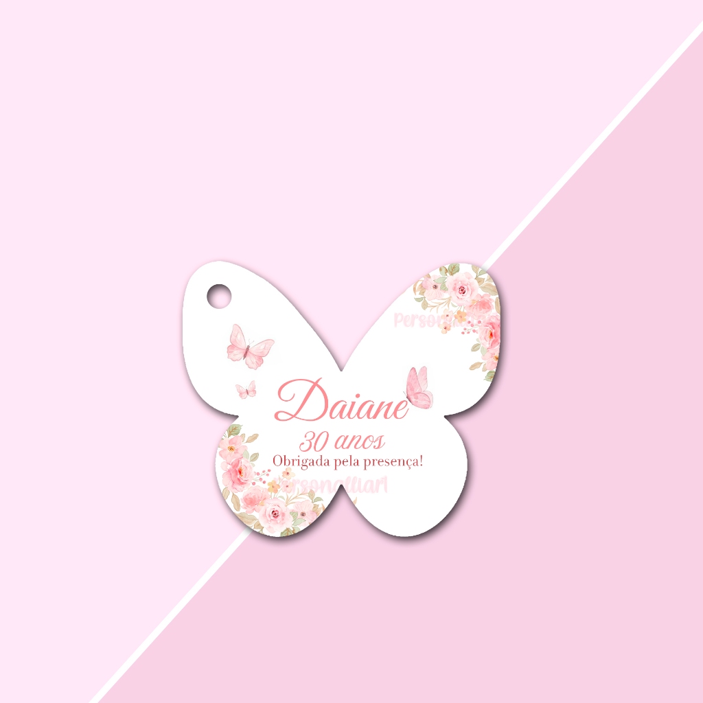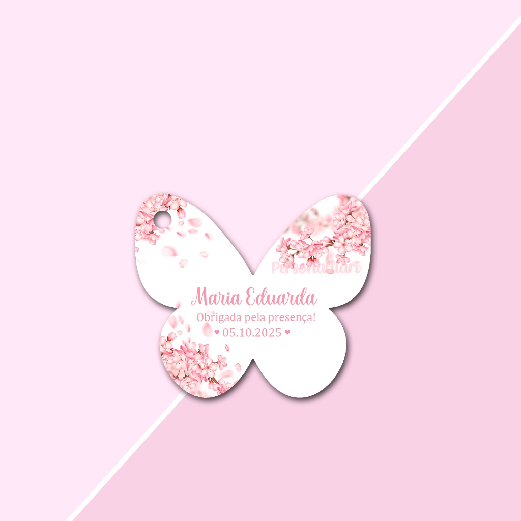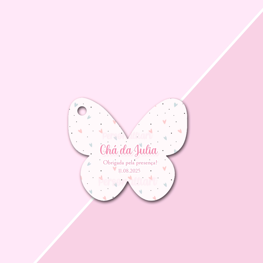 Tags Formato Borboleta Delicada Papel OFFSET 5,3cm x 4,6cm Personalizadas Lembrancinhas, Agradecimentos, Casamento