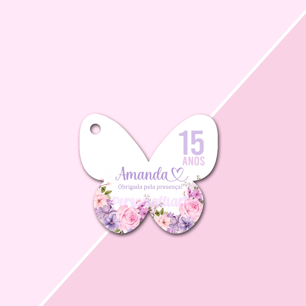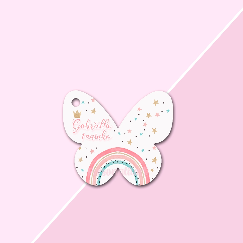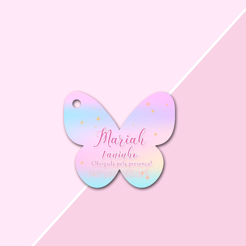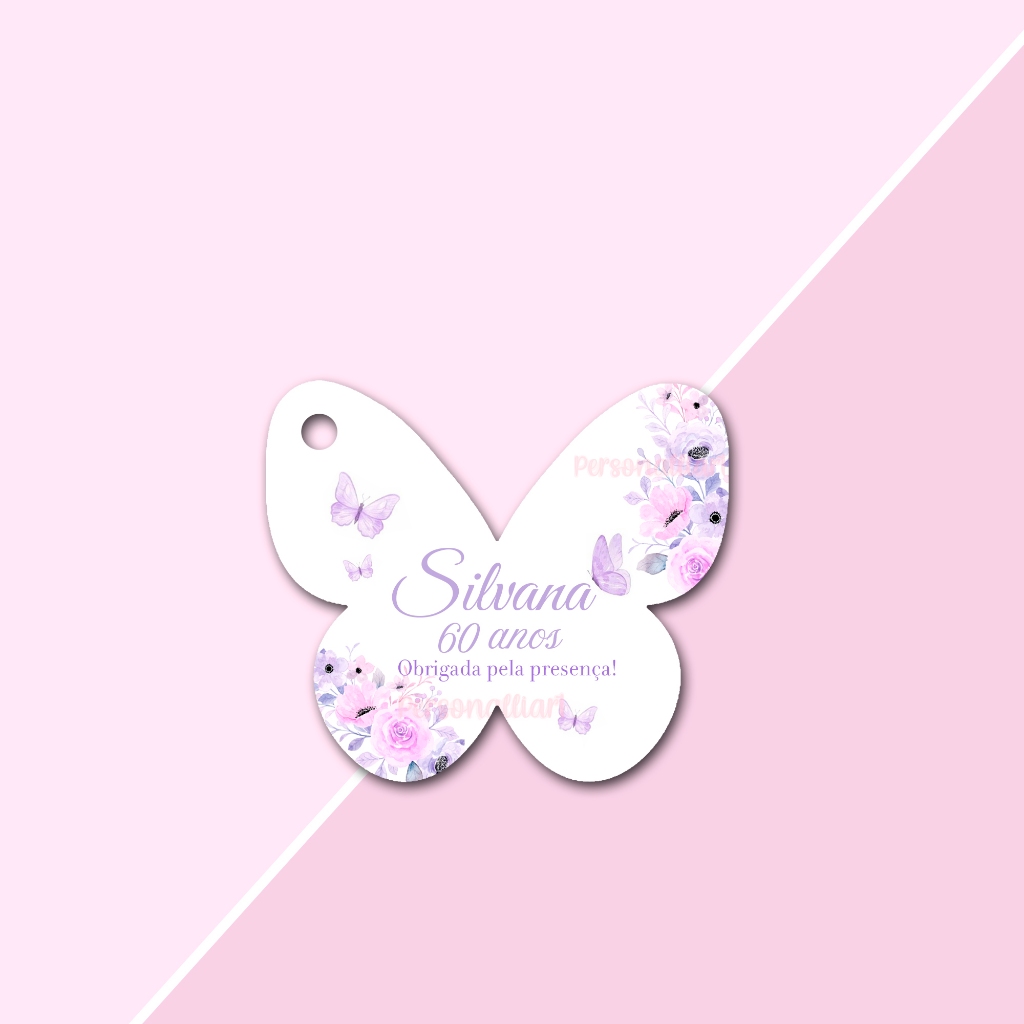Tags Formato Borboleta Delicada Papel OFFSET 5,3cm x 4,6cm Personalizadas Lembrancinhas, Agradecimentos, Casamento