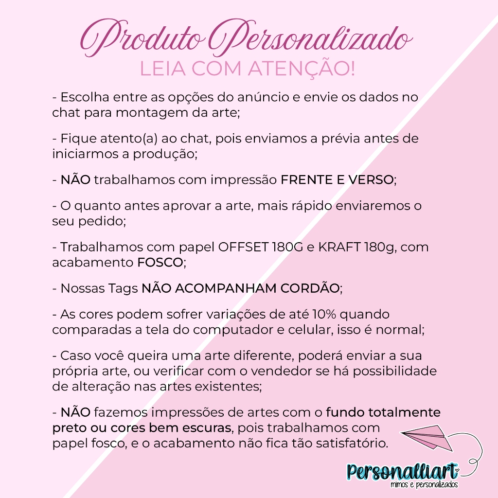 Sob encomenda: envio após 4 dias da compra