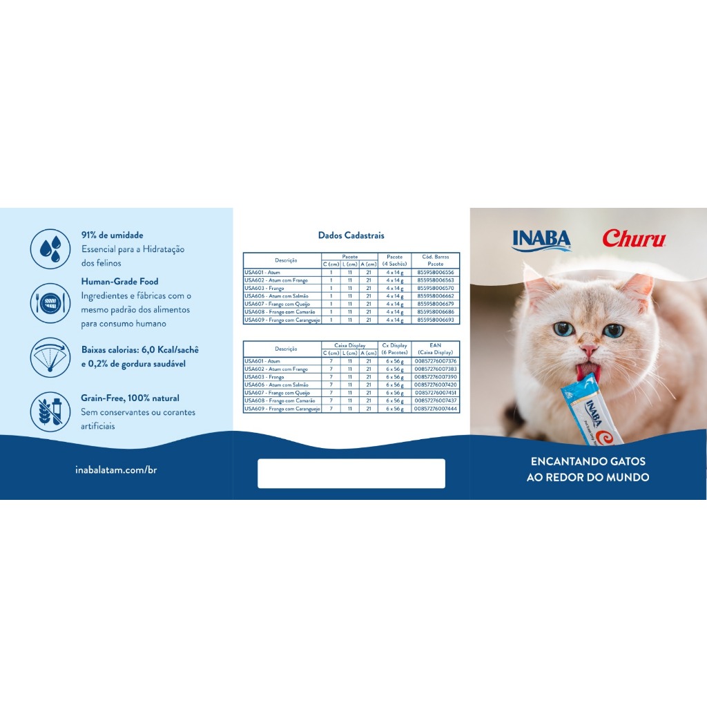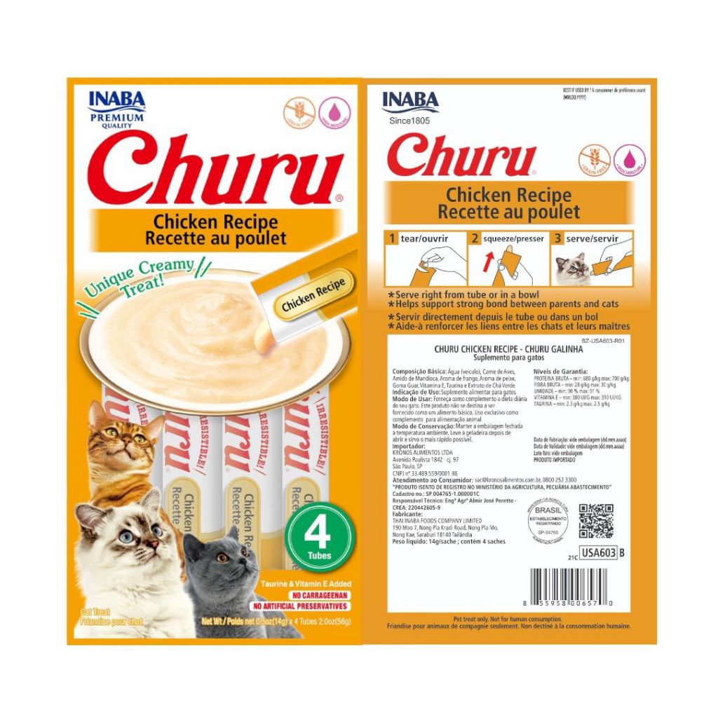 Petisco para Gatos Purê Churu Inaba Kit com 6 a 2 Pacotes Variados 56g cada promoção Original