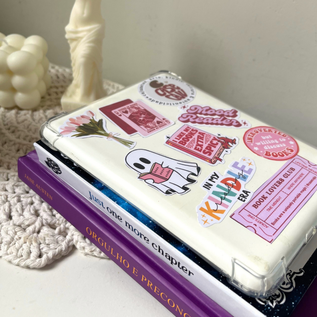 KIT CAPA KINDLE DE SILICONE PREMIUM + CHAVEIRO + ADESIVOS SEM RECORTE - RECORTE À MÃO | Capinha transparente de Kindle Oásis, Paperwhite, 11, 10 | Capa Amazon TPU