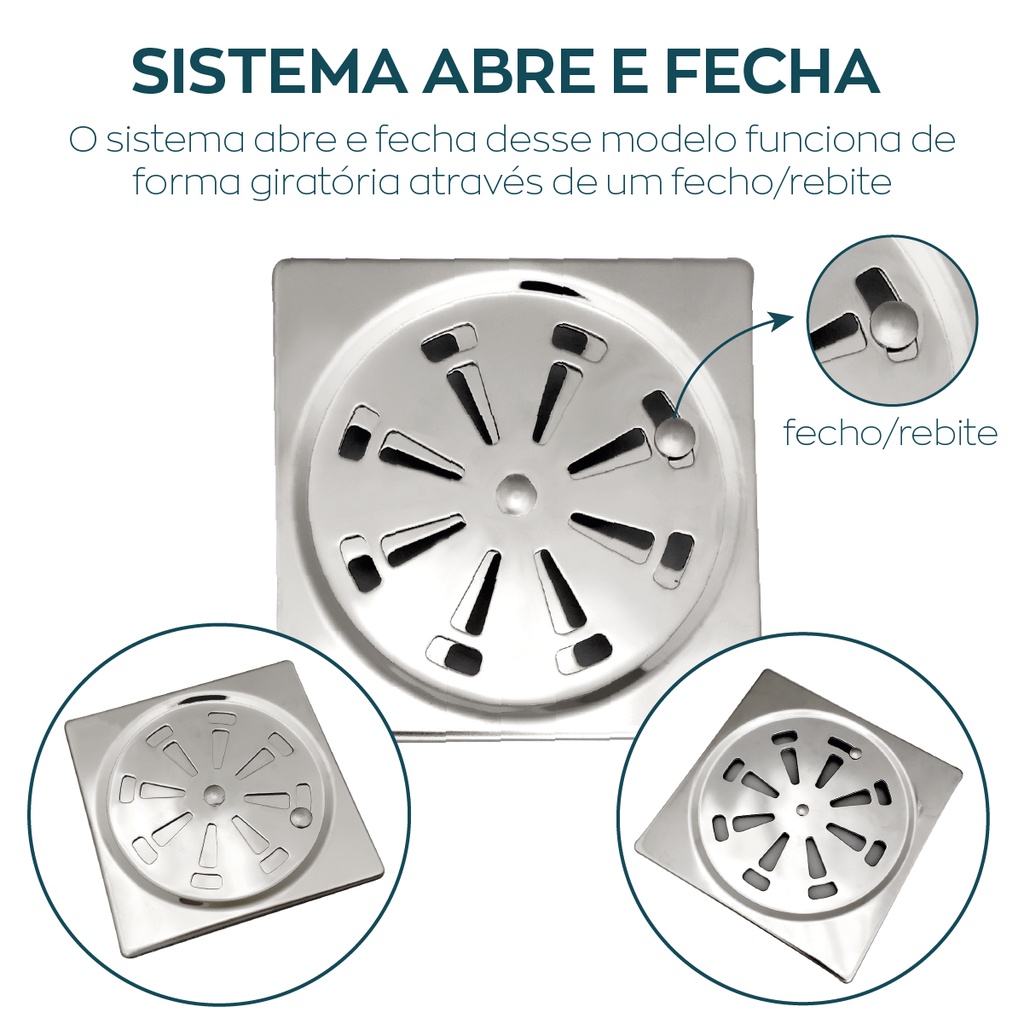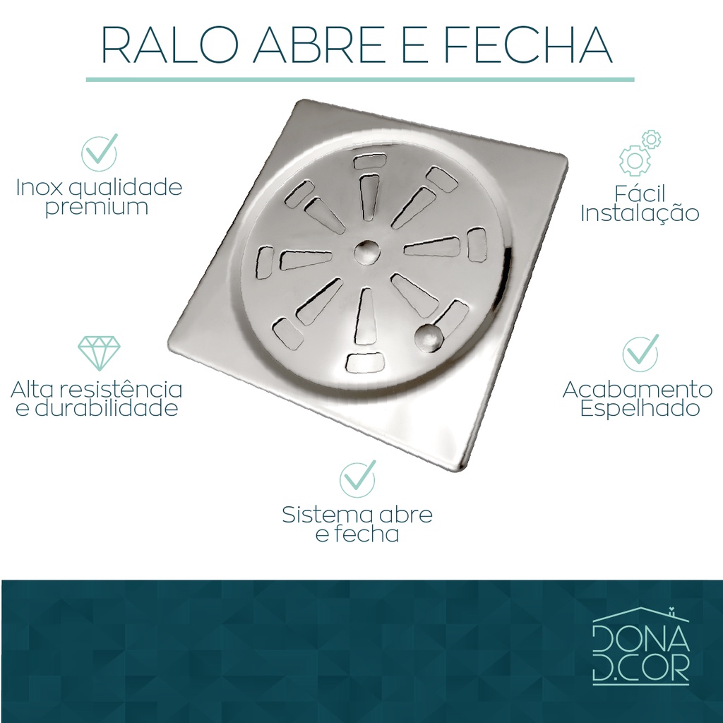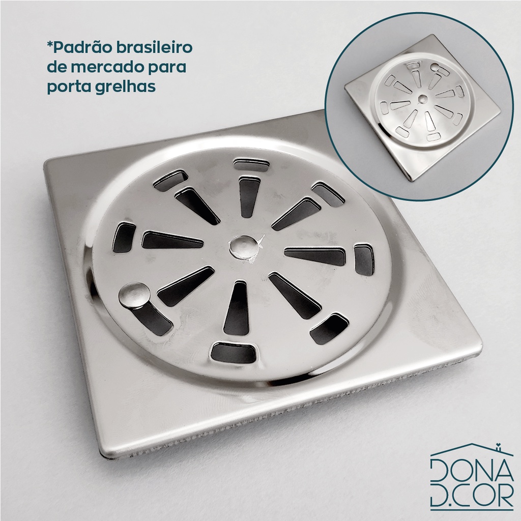 Ralo Grelha Inox Para Banheiro 10x10 Tampa Alto Padrão