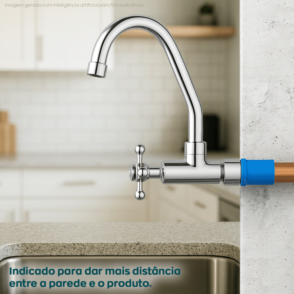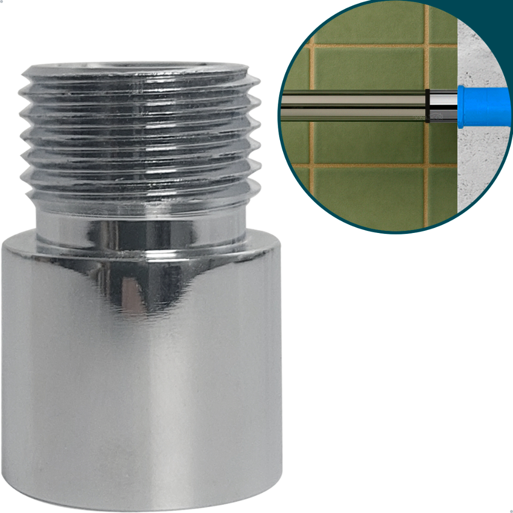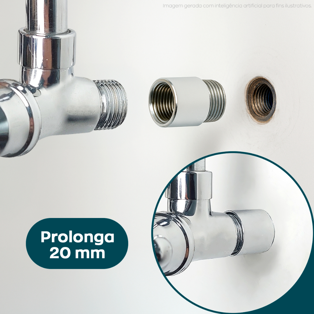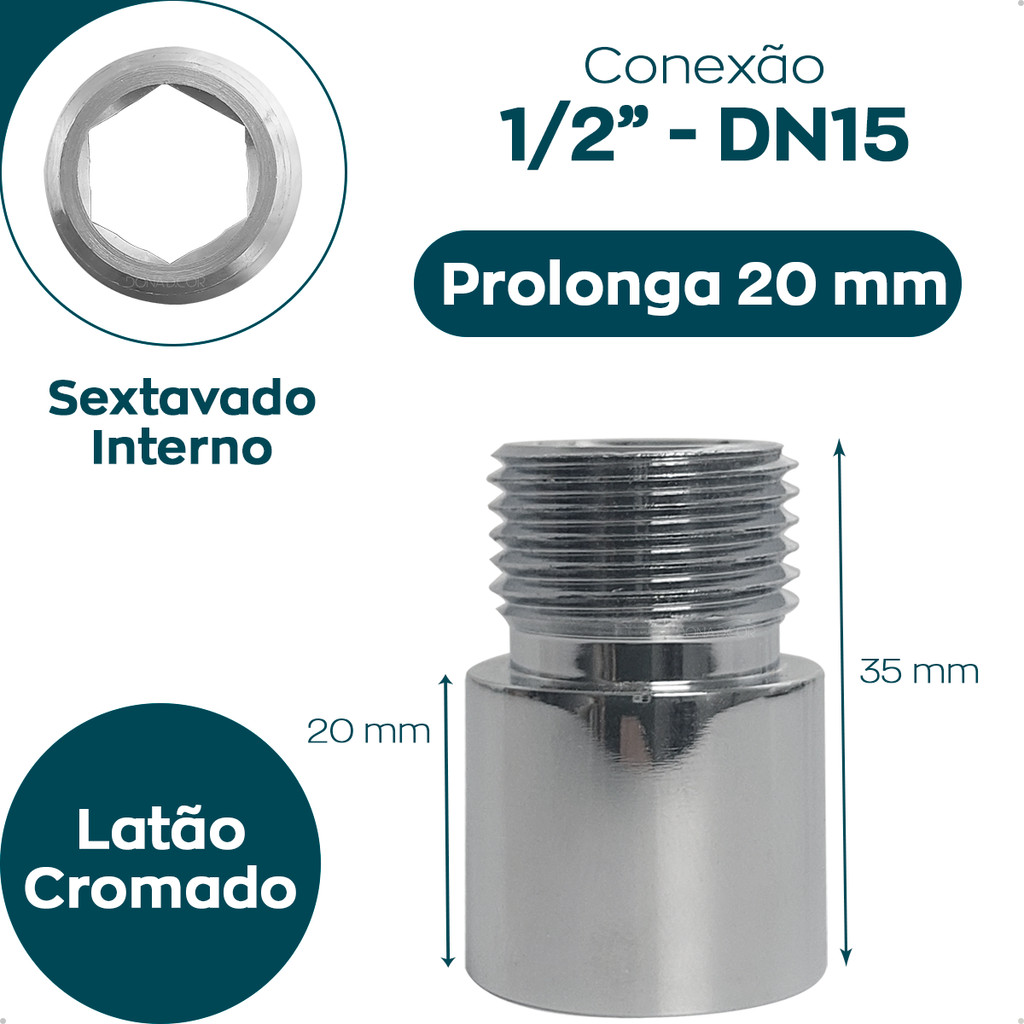 Extensor Curto 20mm Conexão 1/2 Pol Latão Cromado Sextavado Interno Alongador Instalação Hidráulica