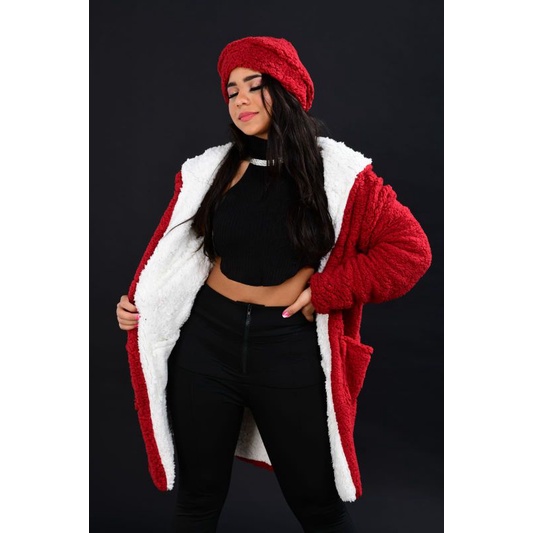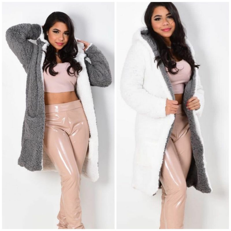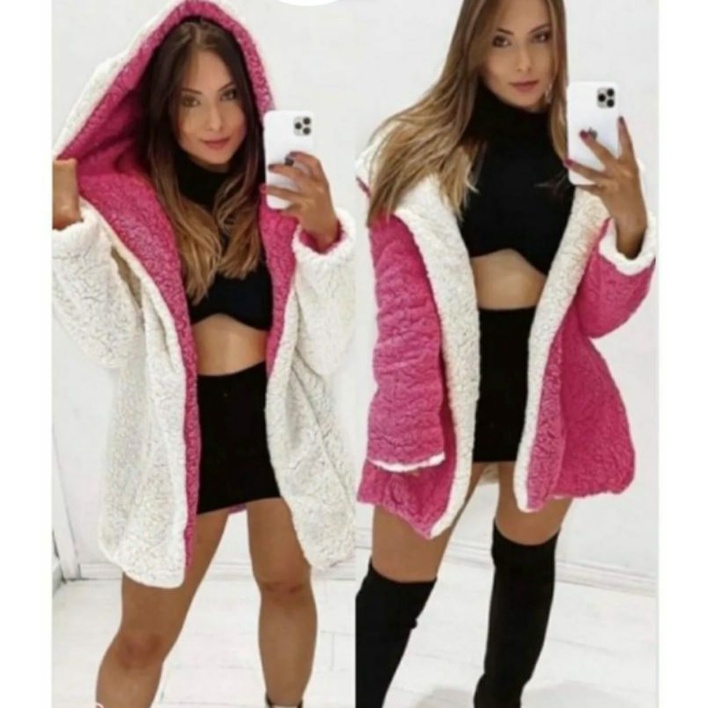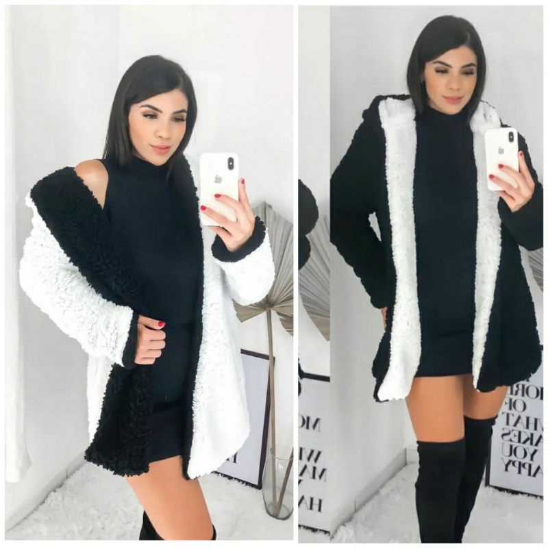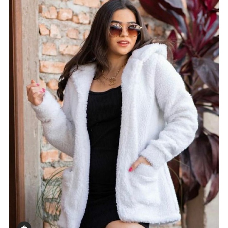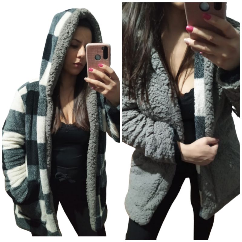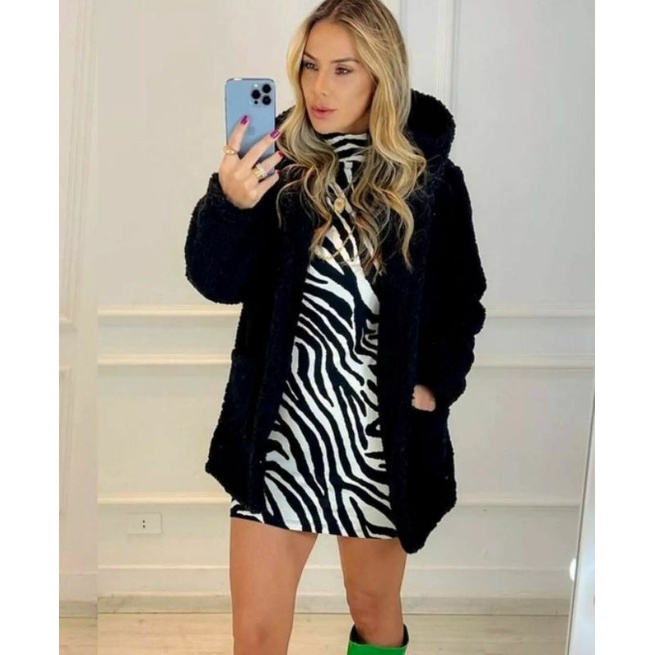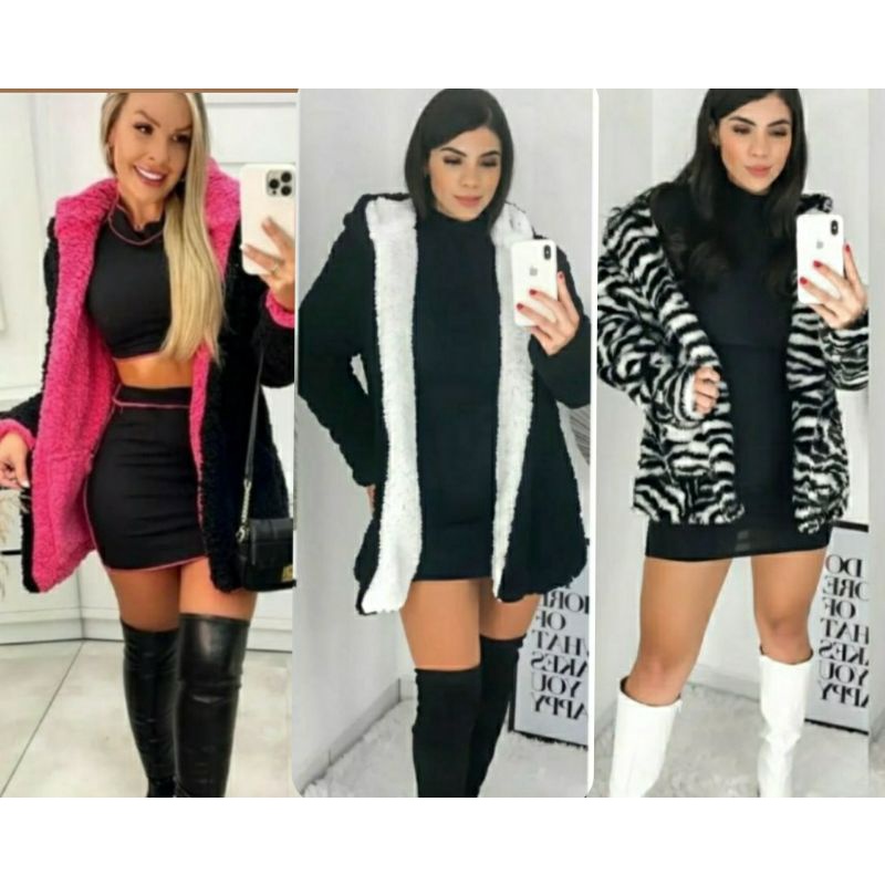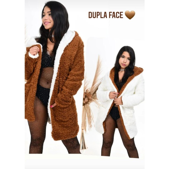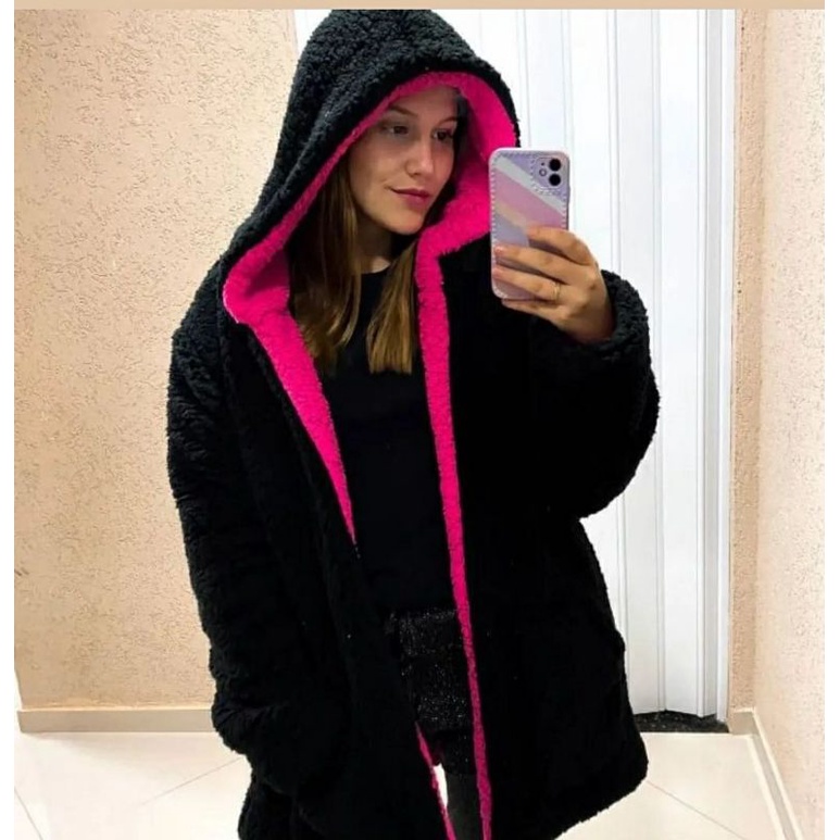 Casaco Teddy Dupla Face Reversível Peluciado Feminino com Bolsos Onça Blusa de Frio Inverno Ted