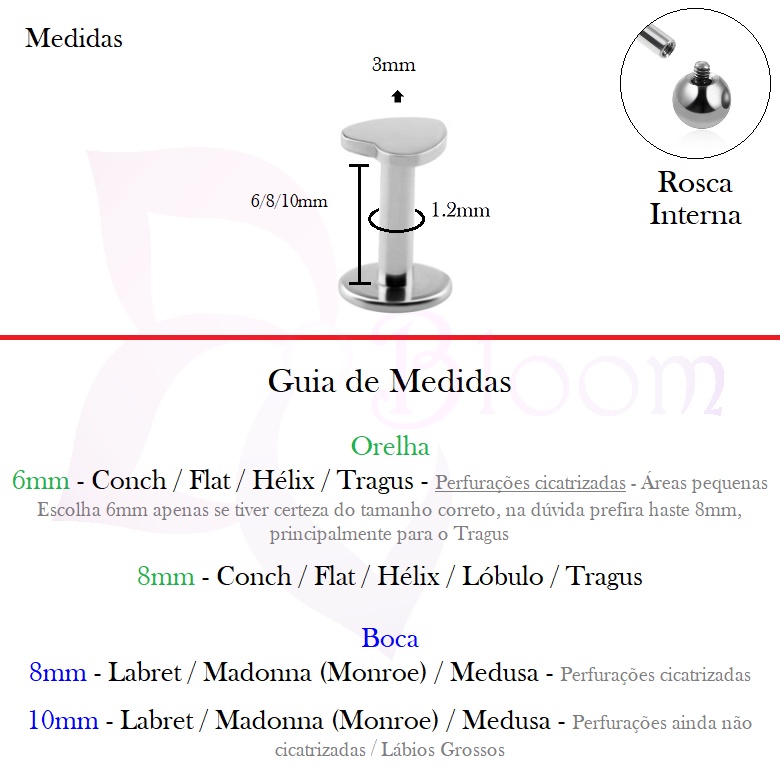 Piercing Titânio Hipoalergênico Tragus / Labret Disco Coração Estrela Raio