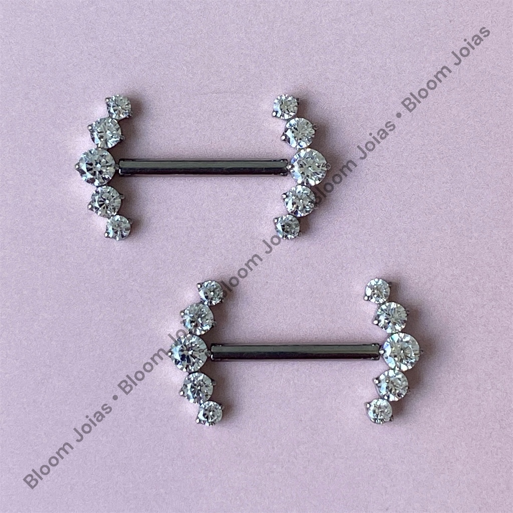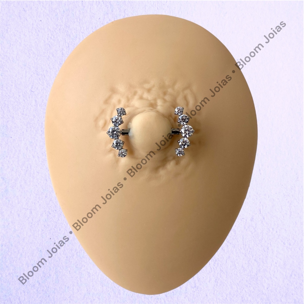 Piercing Barbell Mamilo Cluster 100% Titânio com 5 Zircônias Push Pin
