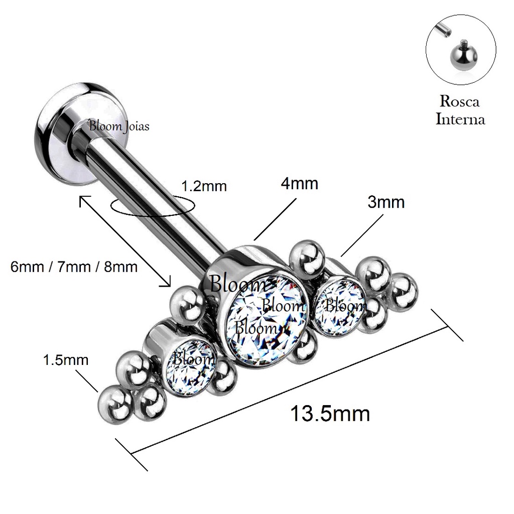 Piercing Titânio Hipoalergênico Cluster Indiano Com Zircônias
