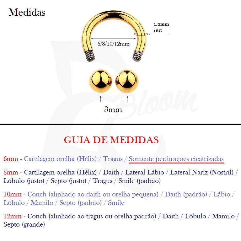 Piercing Ferradura 100% Titânio Septo Orelha Tragus Smile