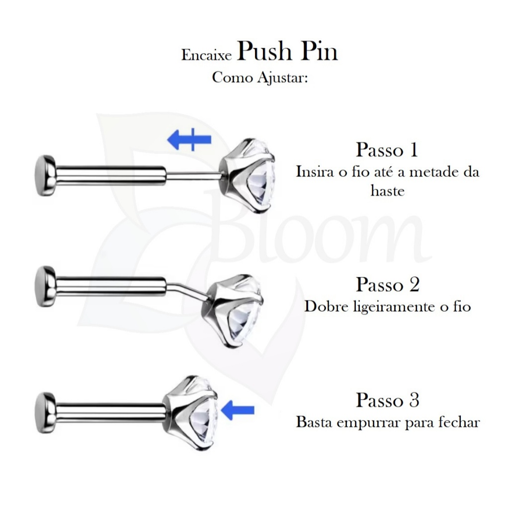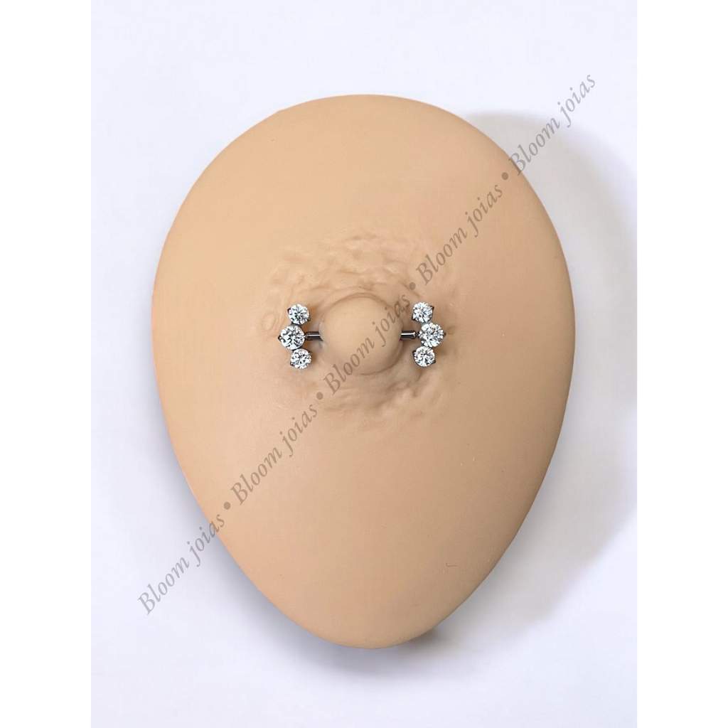Piercing Barbell Mamilo Cluster Titânio G23 com 3 Zircônias Push Pin