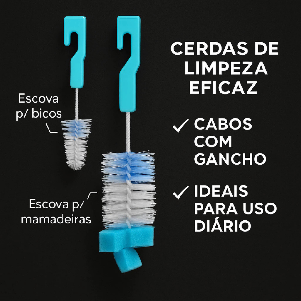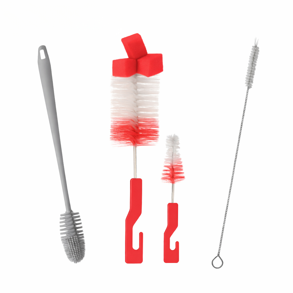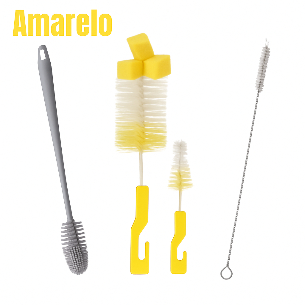 Kit 4 Escovas Para Lavar Louça Garrafa Copo Mamadeira Canudo Multiuso Limpeza Casa Pia