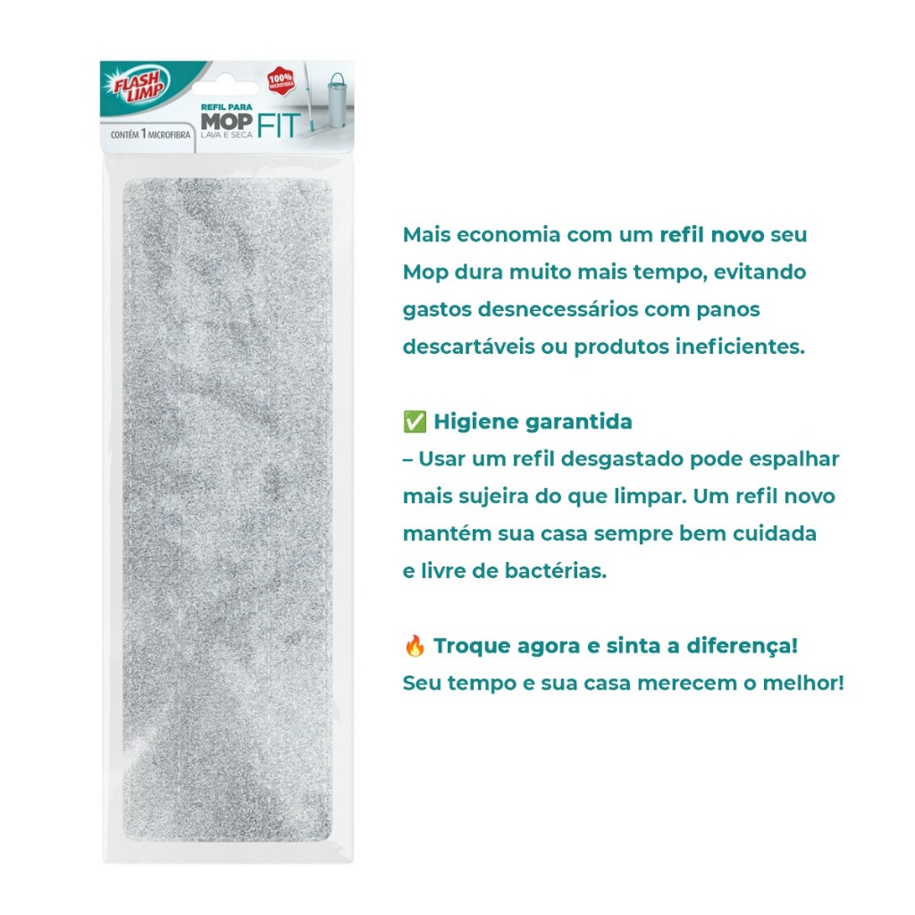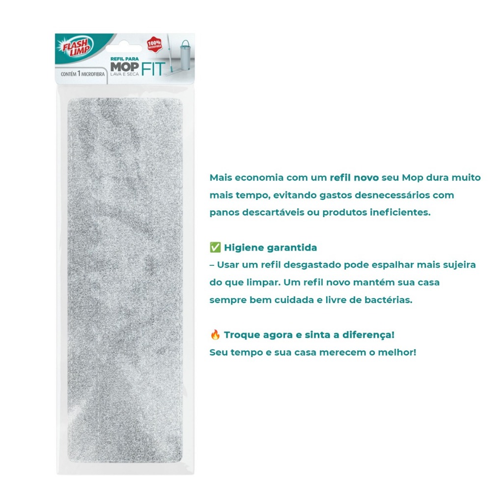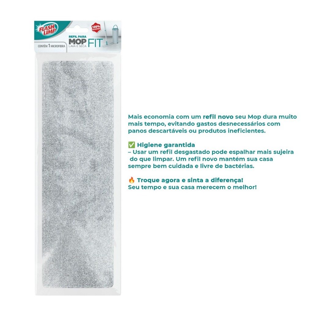Refil De Microfibra Para Mop Lava Seca Fit Flash Limp 2 Unidades