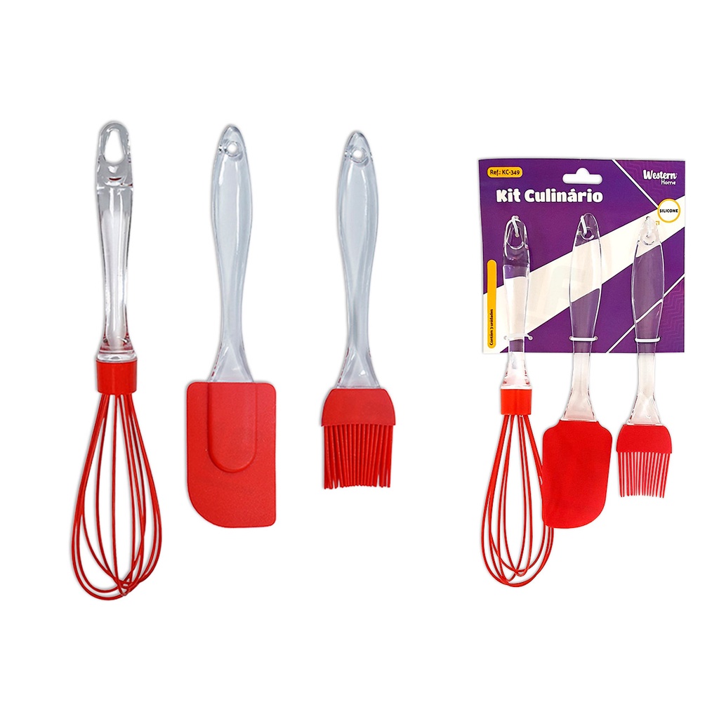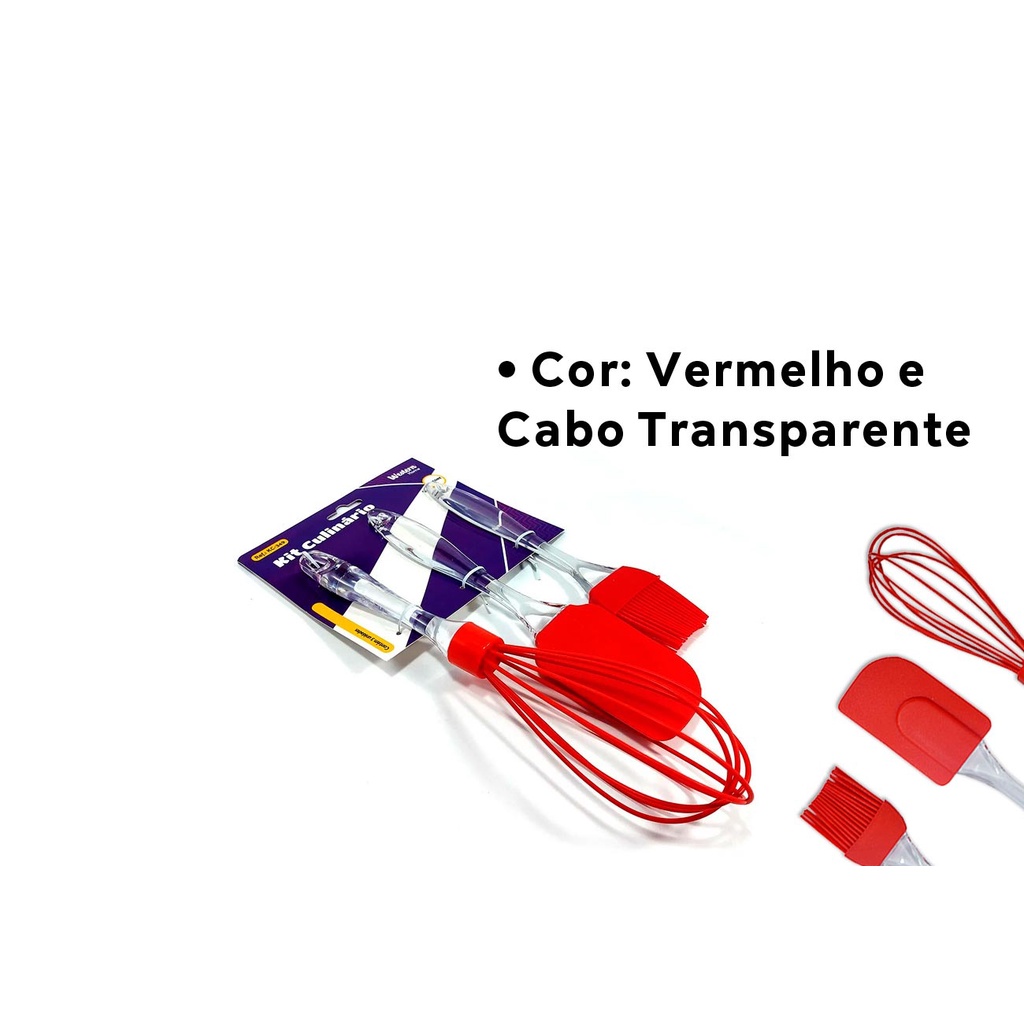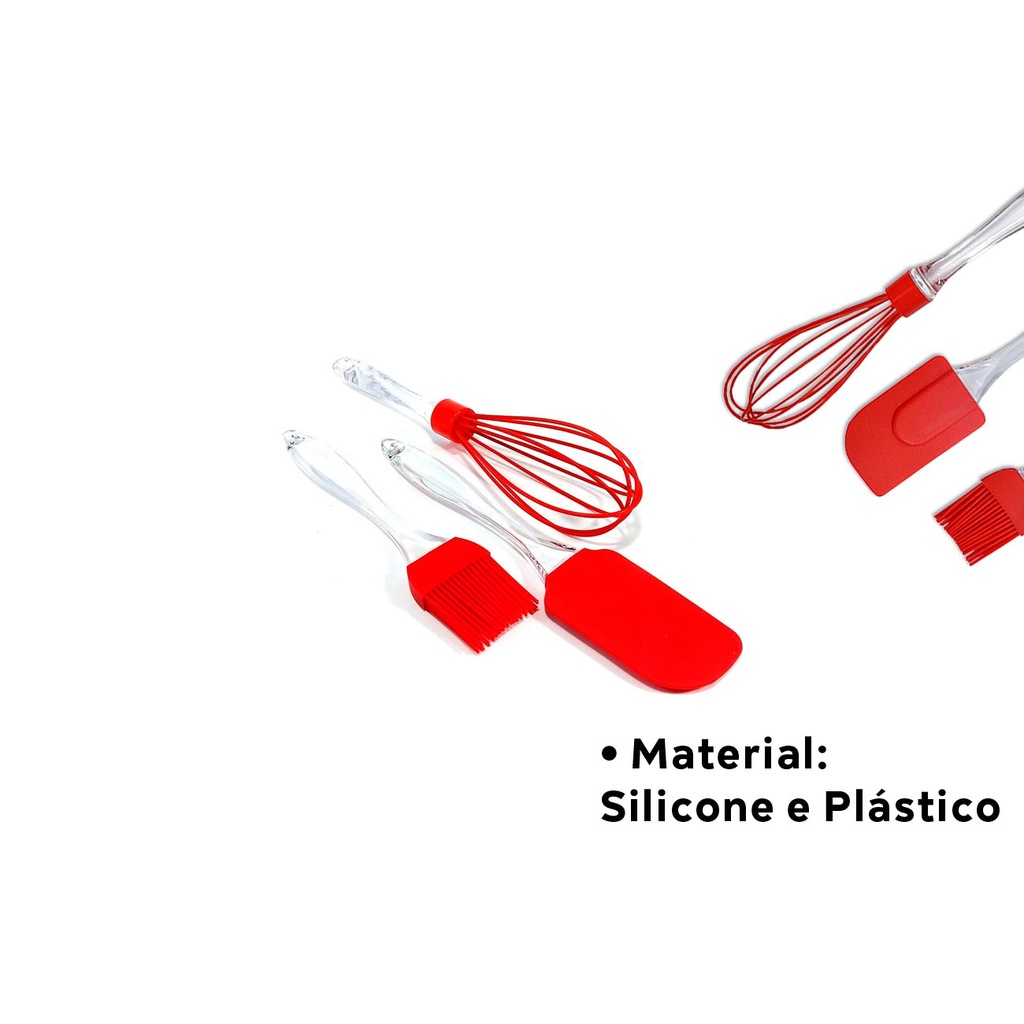 Kit Culinário 3 Peças Espátula Pincel Batedor Silicone Red