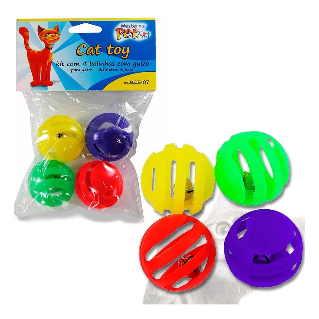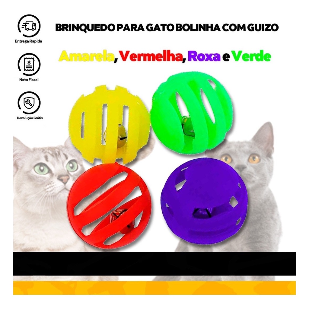 Brinquedos Bola Com Guizo 4 Unidades P/ Gato Interativos Pet