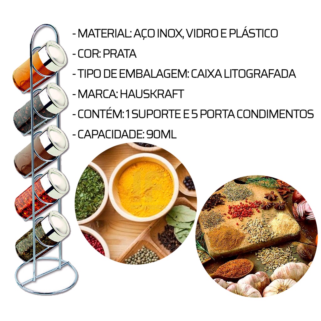 Porta Temperos Organizador Suporte Vertical 5 Potes