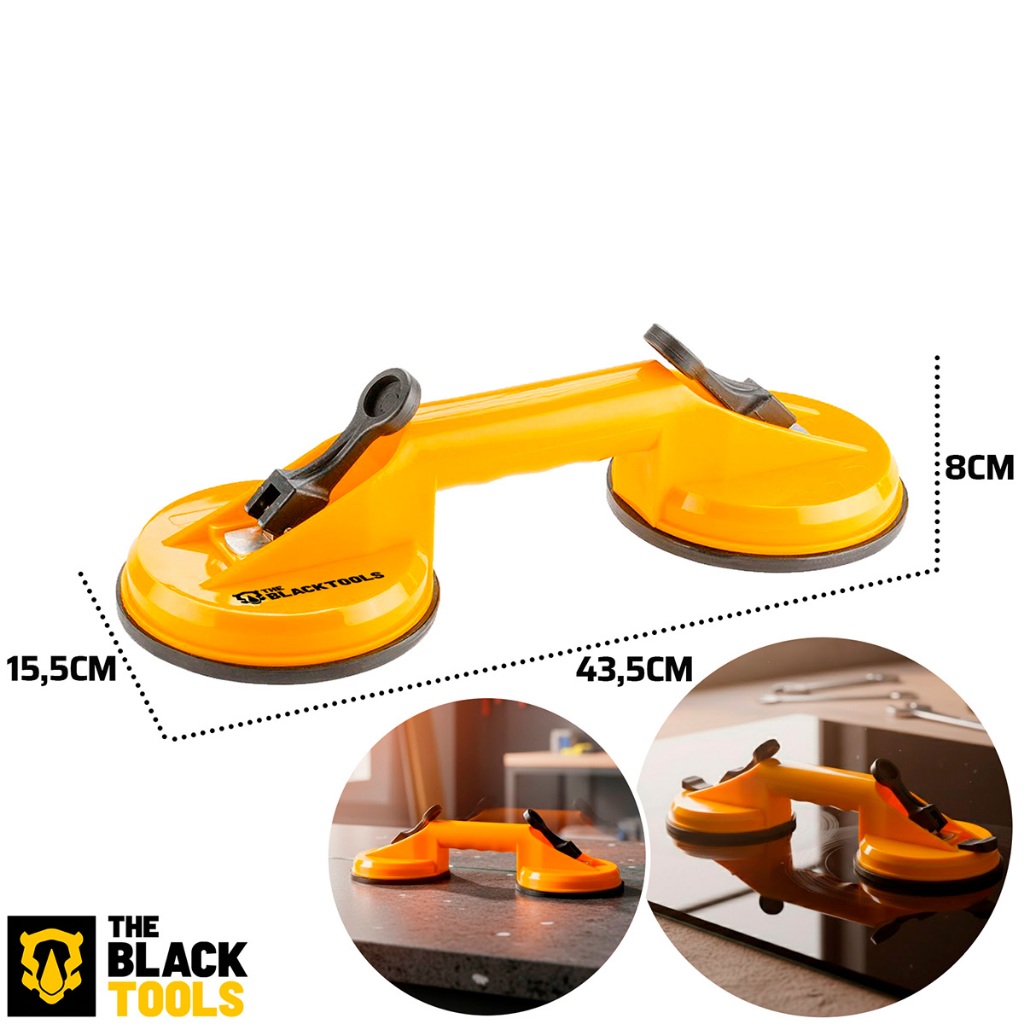 Kit 2 Ventosa Dupla a Vácuo para Vidro, Porcelanato e Mármore 60kg The Black Tools