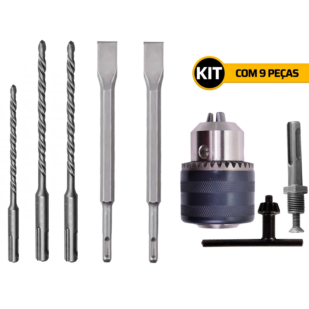 Kit Mandril E Adaptador Sds 3 Brocas Ponteira E 2 Talhadeira