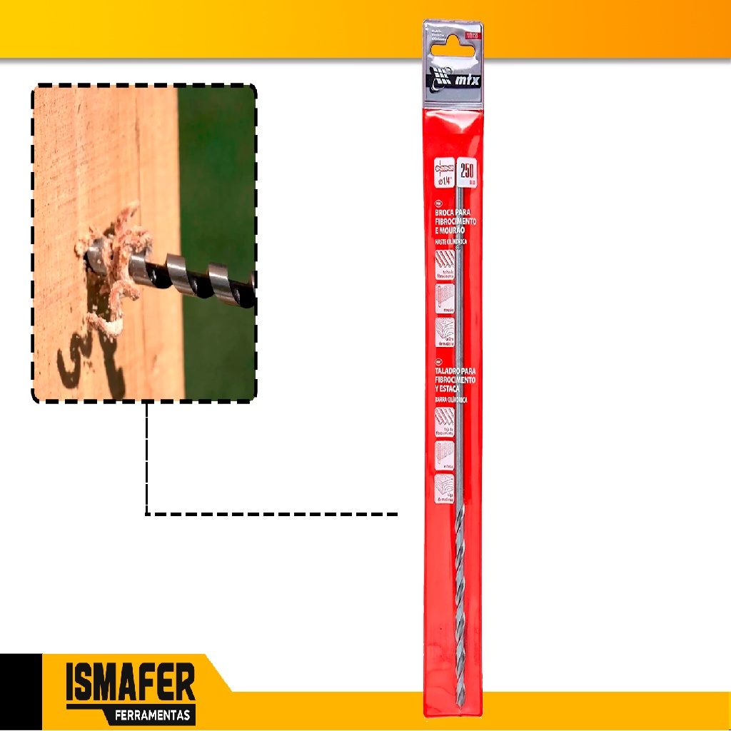 2 Unid Broca P/ Mourão Madeira Fibrocimento 1/4 (6 Mm)x250mm