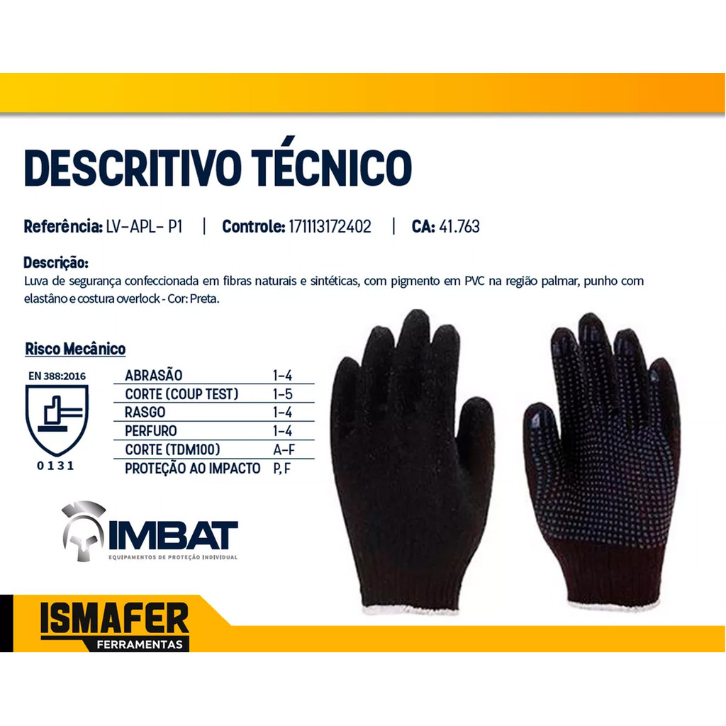 Kit 12 Luva Pigmentada Epi Ca Segurança Multi Tato Tricotada