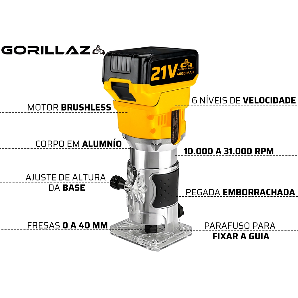 Tupia Manual Elétrica Laminados 2 Baterias 21v Grz-tp2b Completa Com Acessórios Gorillaz