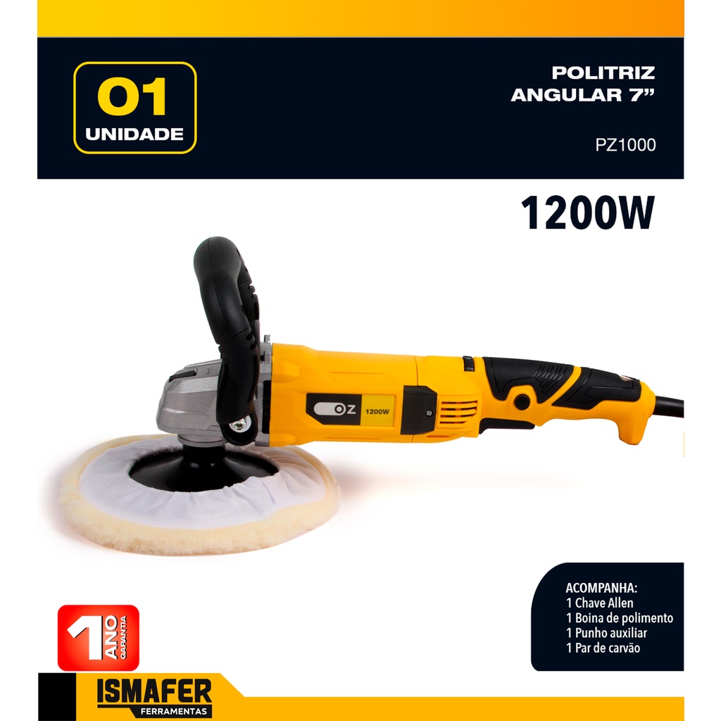 Politriz Angular Automotiva 7 Polegadas 1200w 500-4200rpm Pz1000 Oz