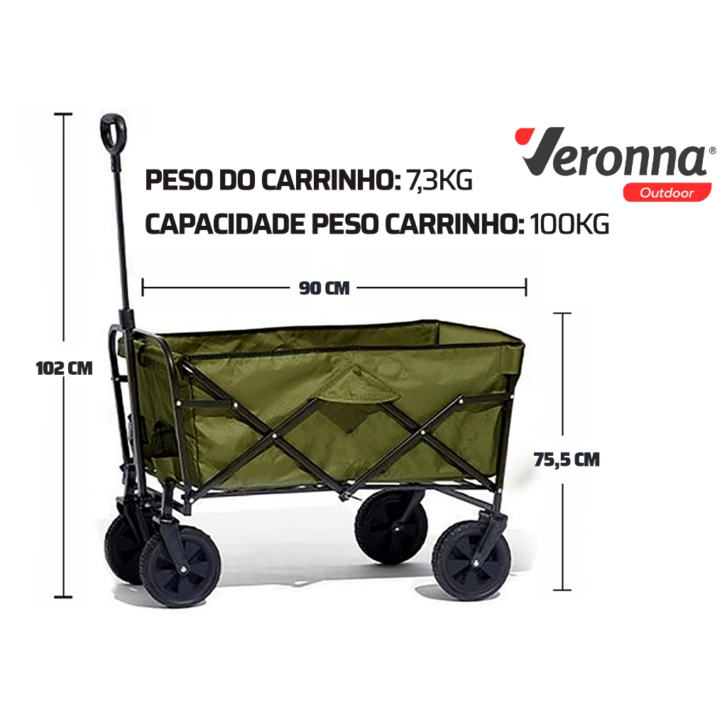 Carrinho Praia/camping Suporta 100kg Dóbravel Alça Roller