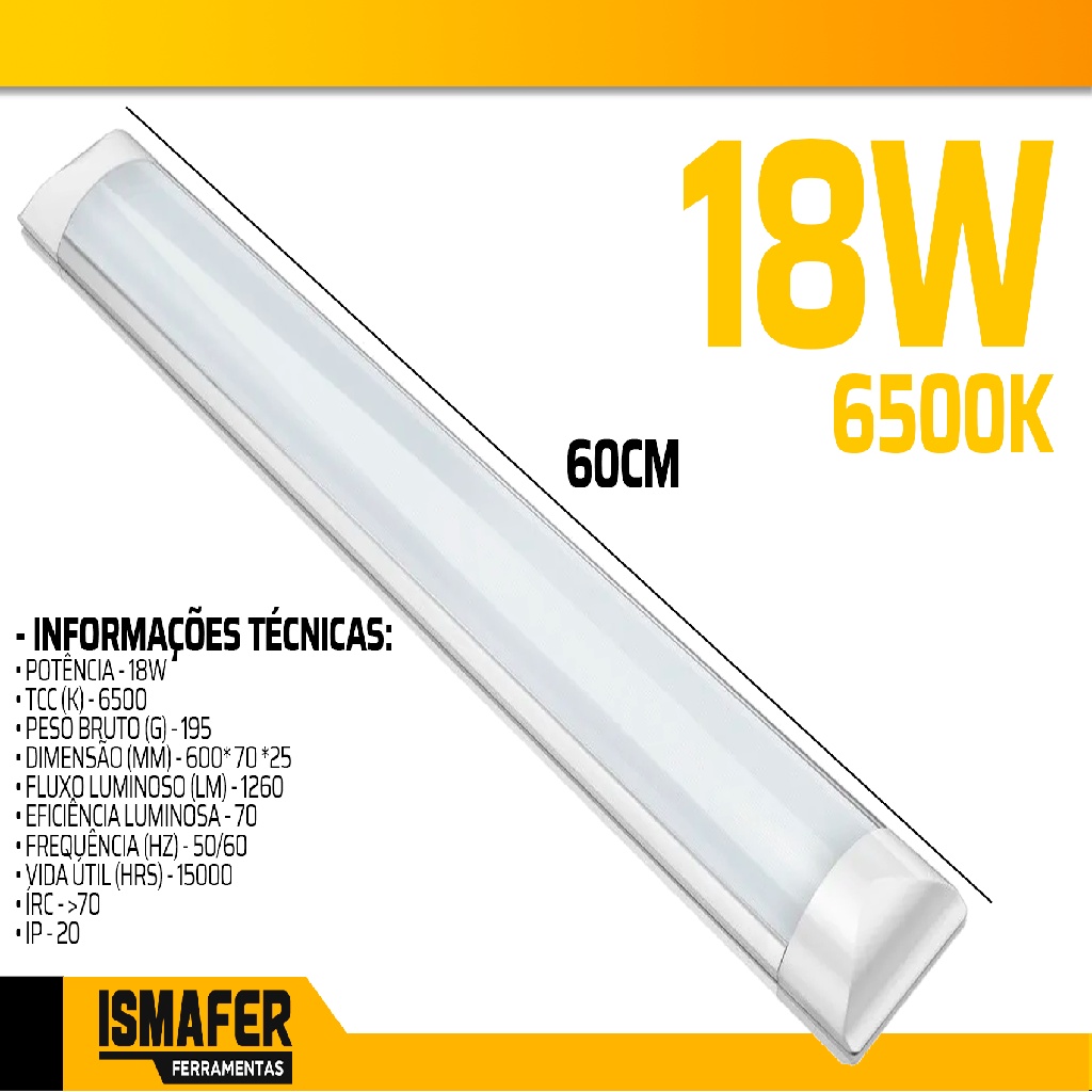 Kit 5 Luminária Tubular Led Slim 0,6mt Branco Frio 60cm 40w