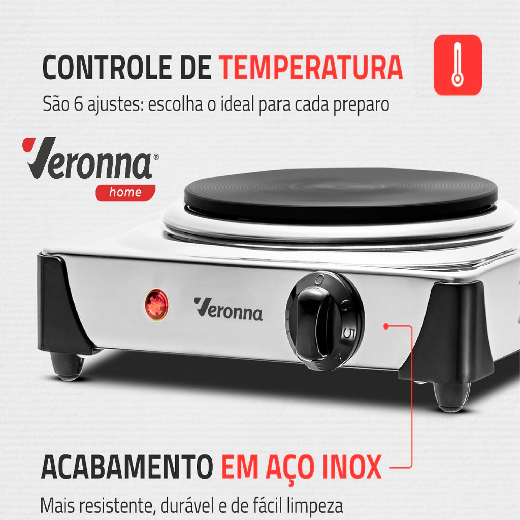 Fogão Eletrico Cooktop Portatil Inox 1 Boca 1000w