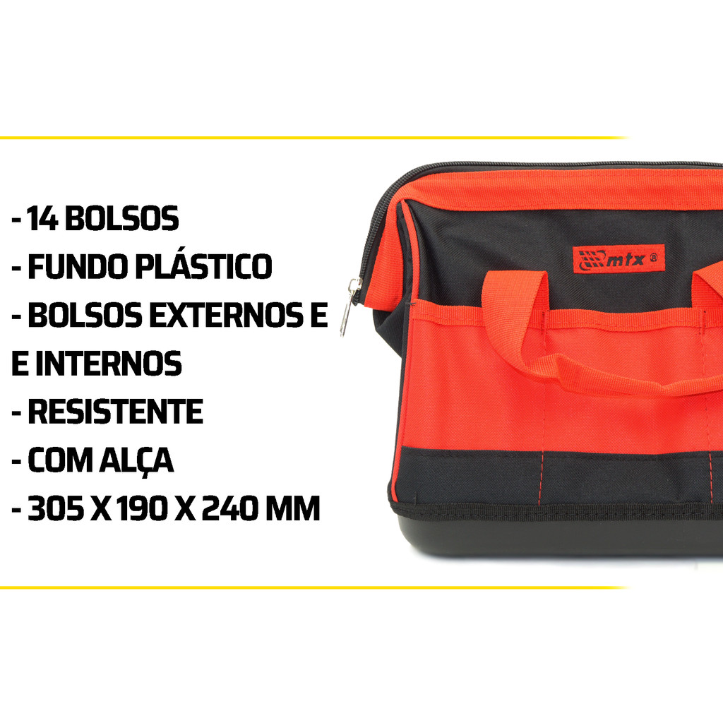 Bolsa De Ferramentas 14 Bolsos Com Alça 350 X 190 X 240 Mm