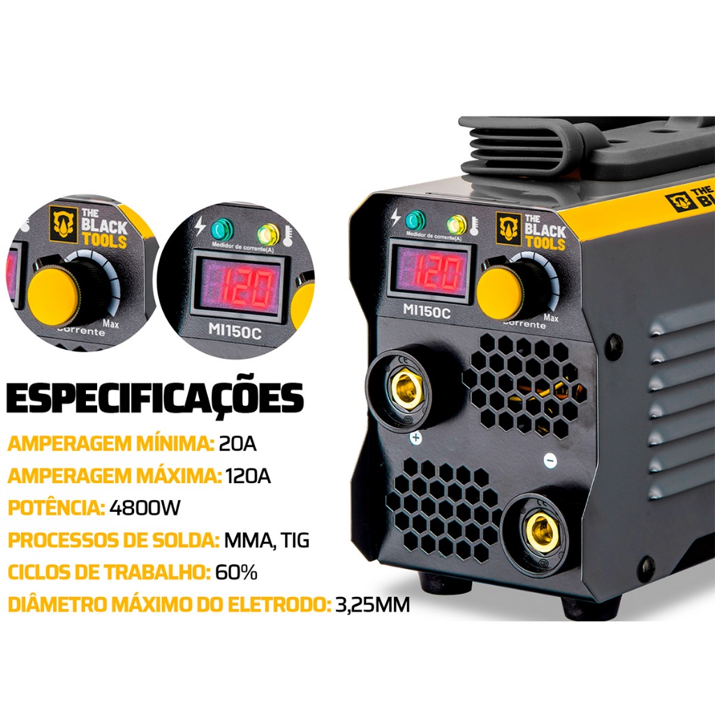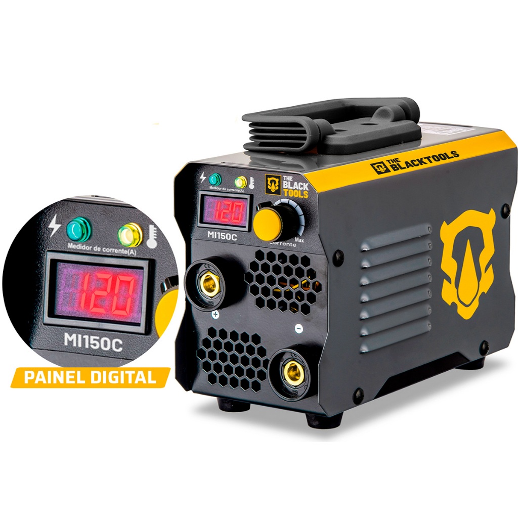 Kit Maquina De Solda Inversora120a Digital 220V E Esmerilhadeira Angular 4.1/2 + Acessórios The Black Toos