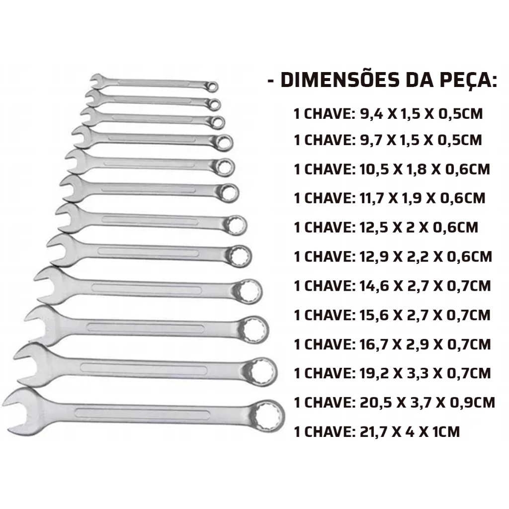 Jogo Chave Combinada Boca Estrela 12 Peças