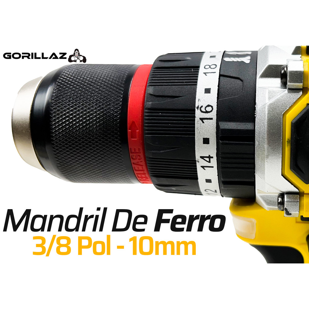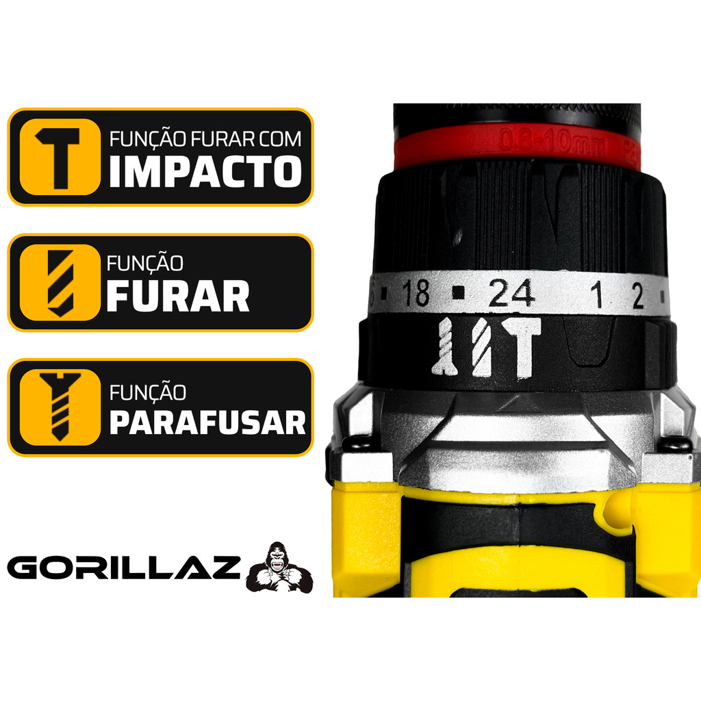 Furadeira Parafusadeira Impacto Sem Fio 2 Bat 21v Brushless 3/8 10mm Gorillaz Gpb-100 Bivolt Maleta