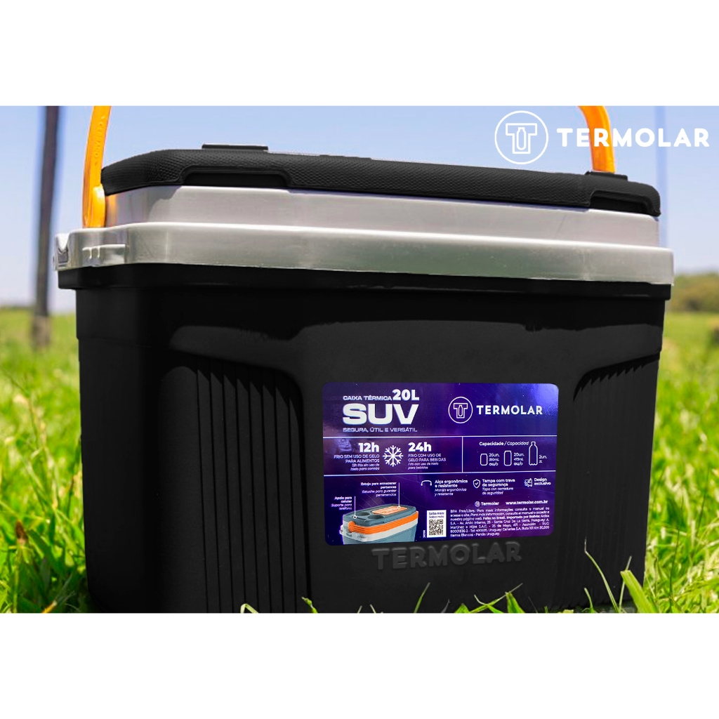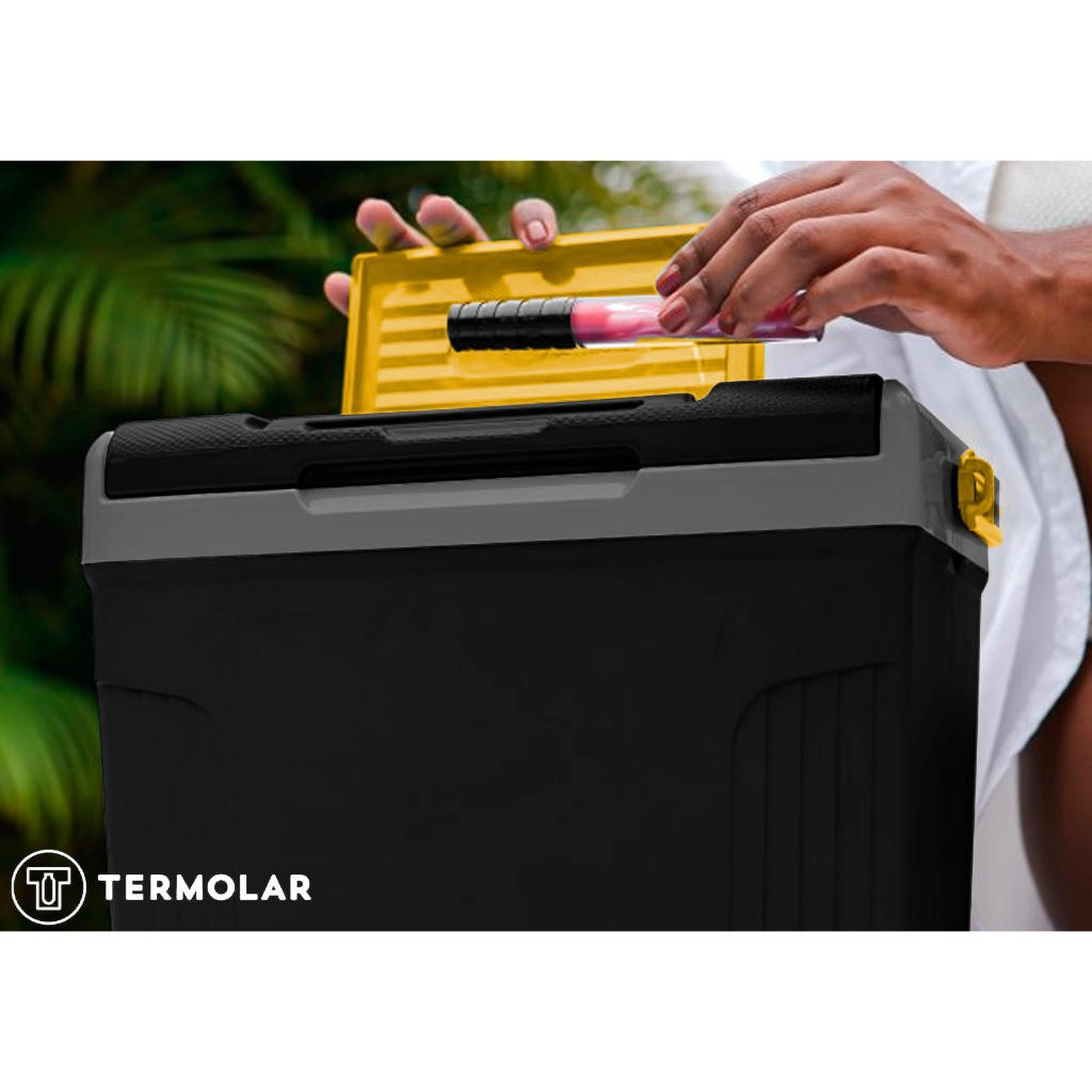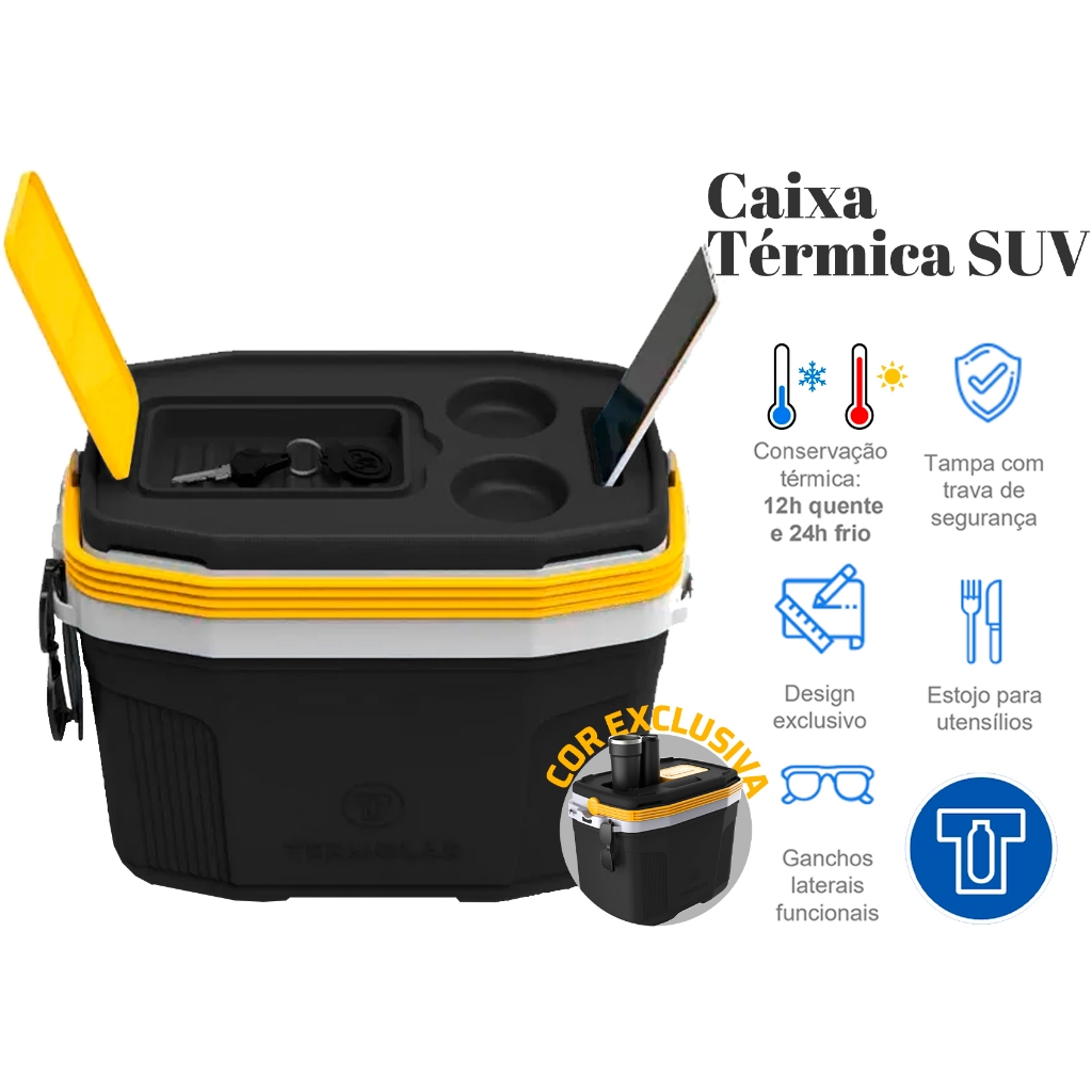 Kit 2 Caixas Termica Suv Cooler Com Alça 20l + 8 Litros Praia Pesca Camping Preto E Amarelo Termolar