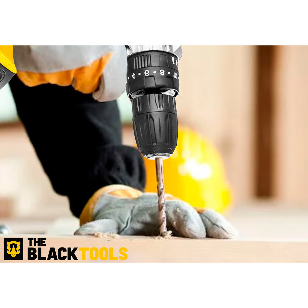 Furadeira Parafusadeira Impacto 2Baterias 2000mah 21v 3/8 Tb-21pkx The Black Tools Maleta Acessorios