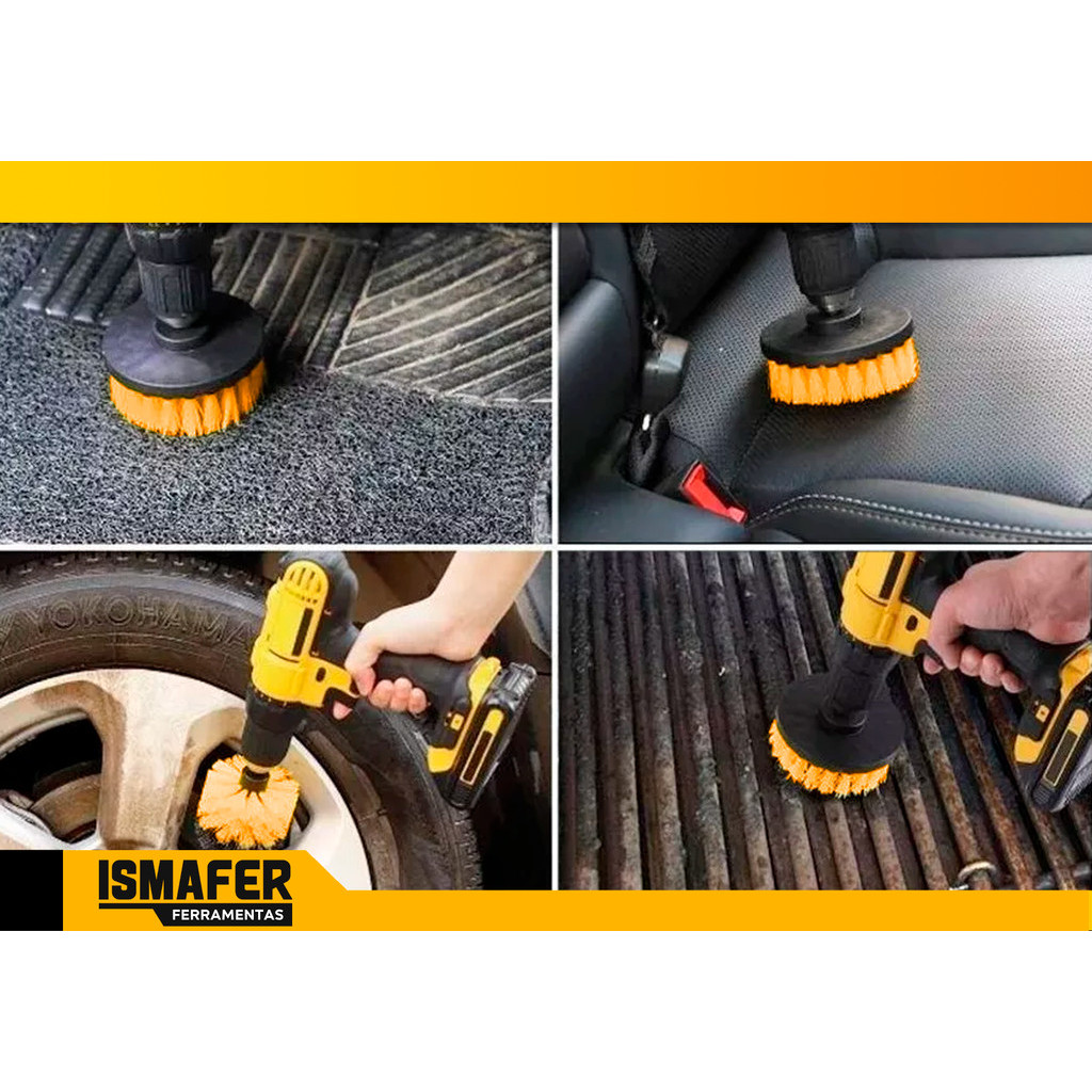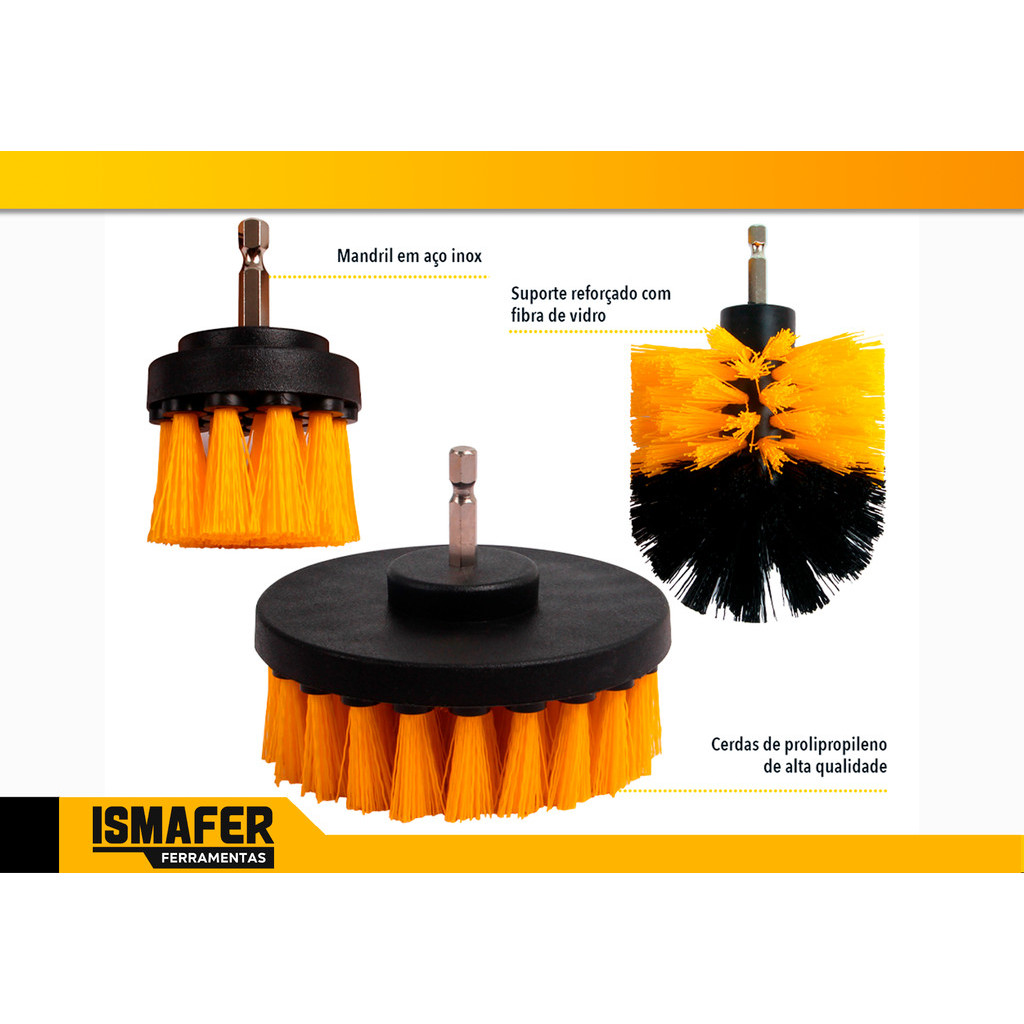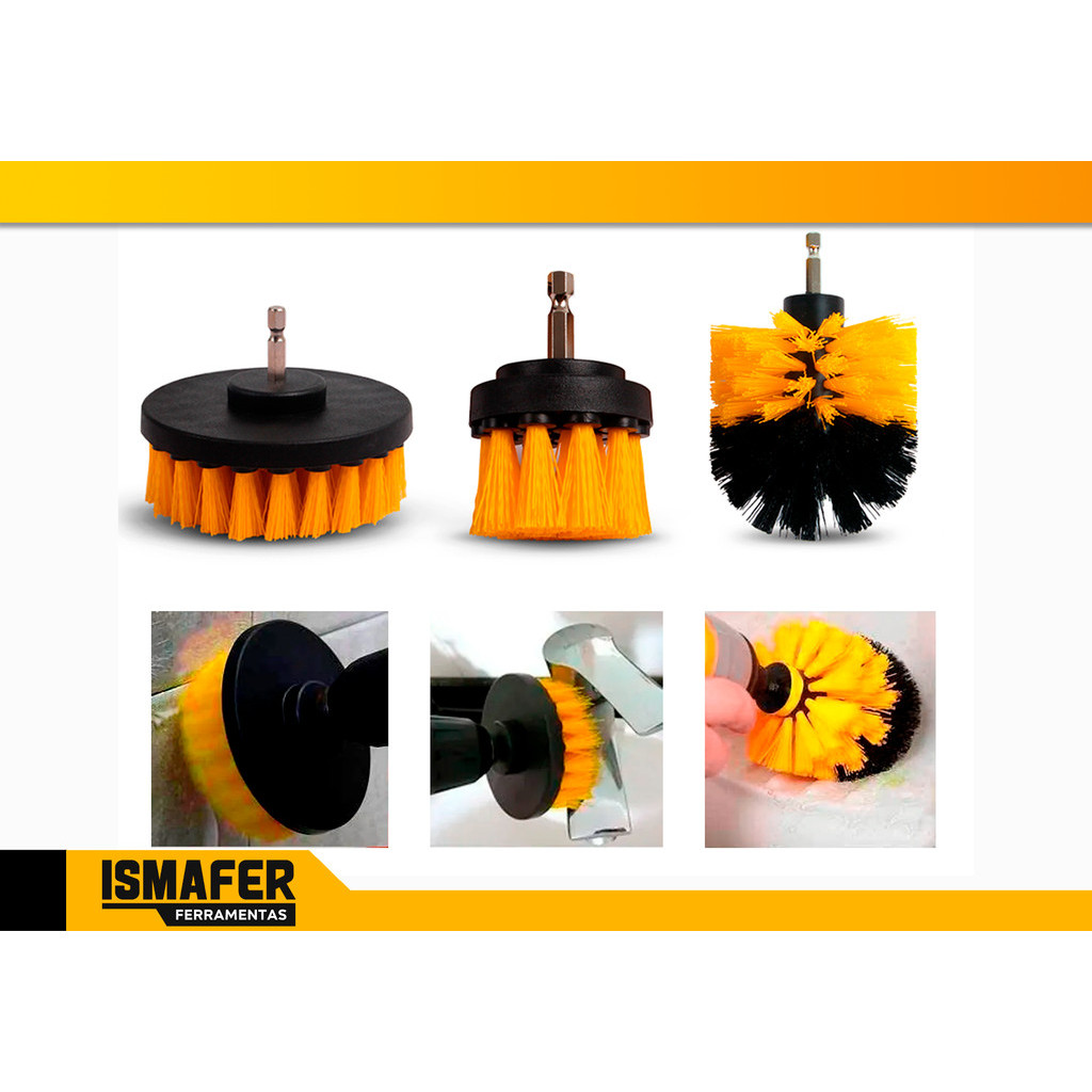 Kit 3 Escovas Limpeza Box Sofás Tapetes Estofados Banheiro Cor Amarelo E Preto Cw100 Oz
