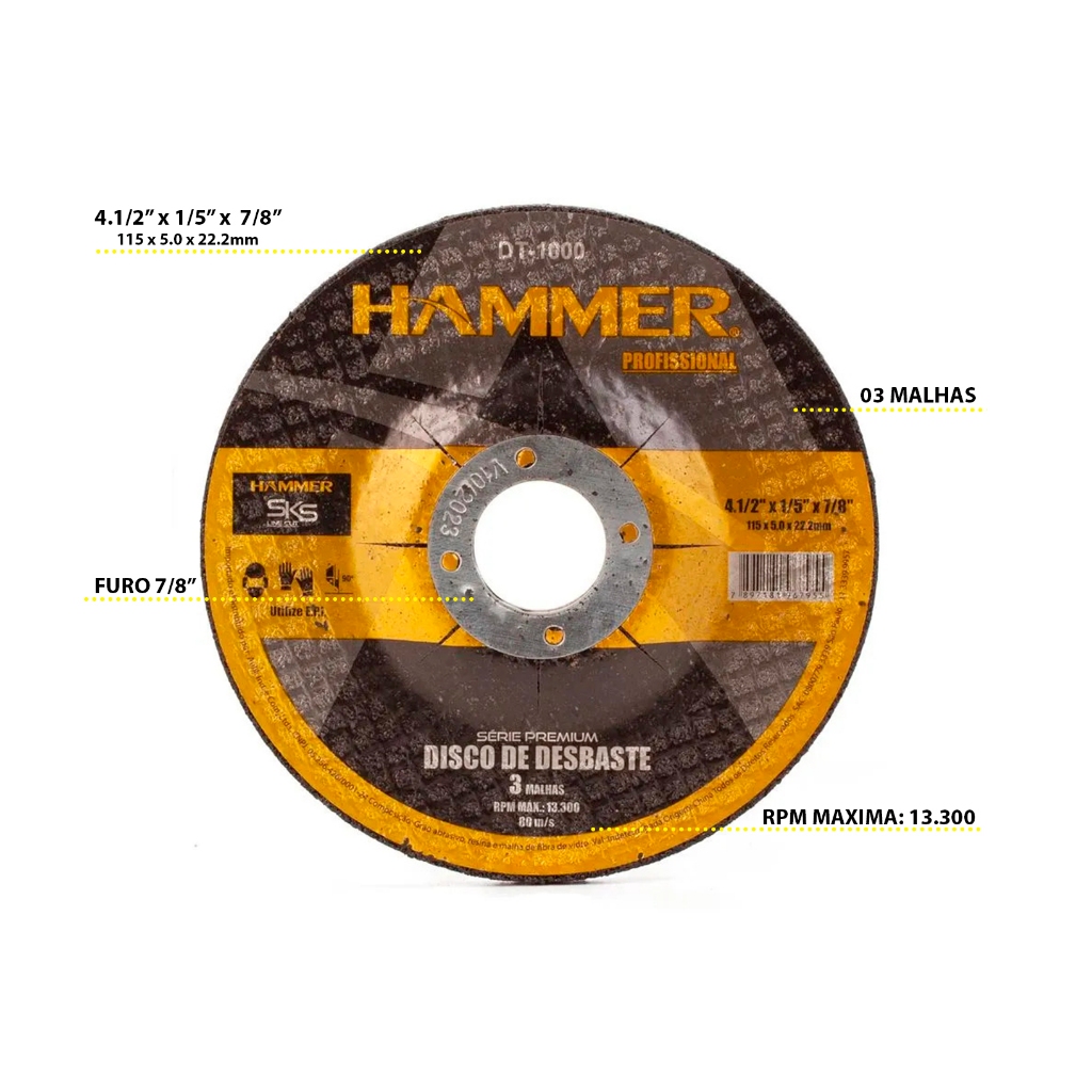 Disco De Desbaste Dt1000 3 Malhas 115x 5,0 X 22,2mm