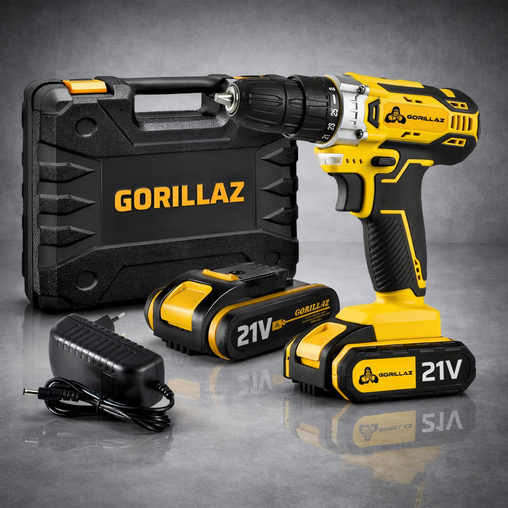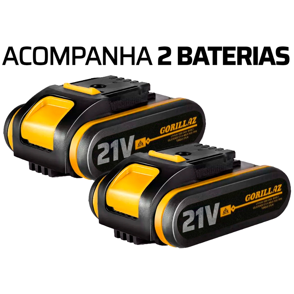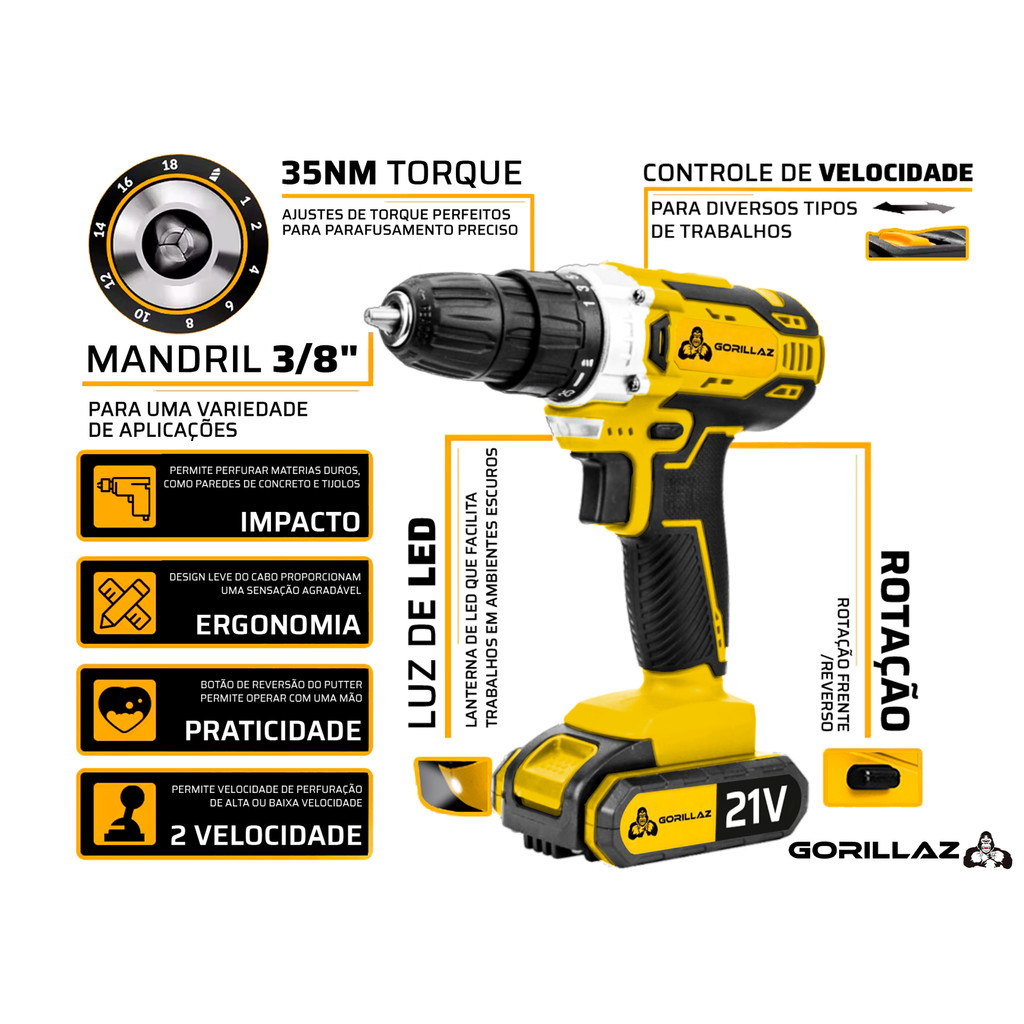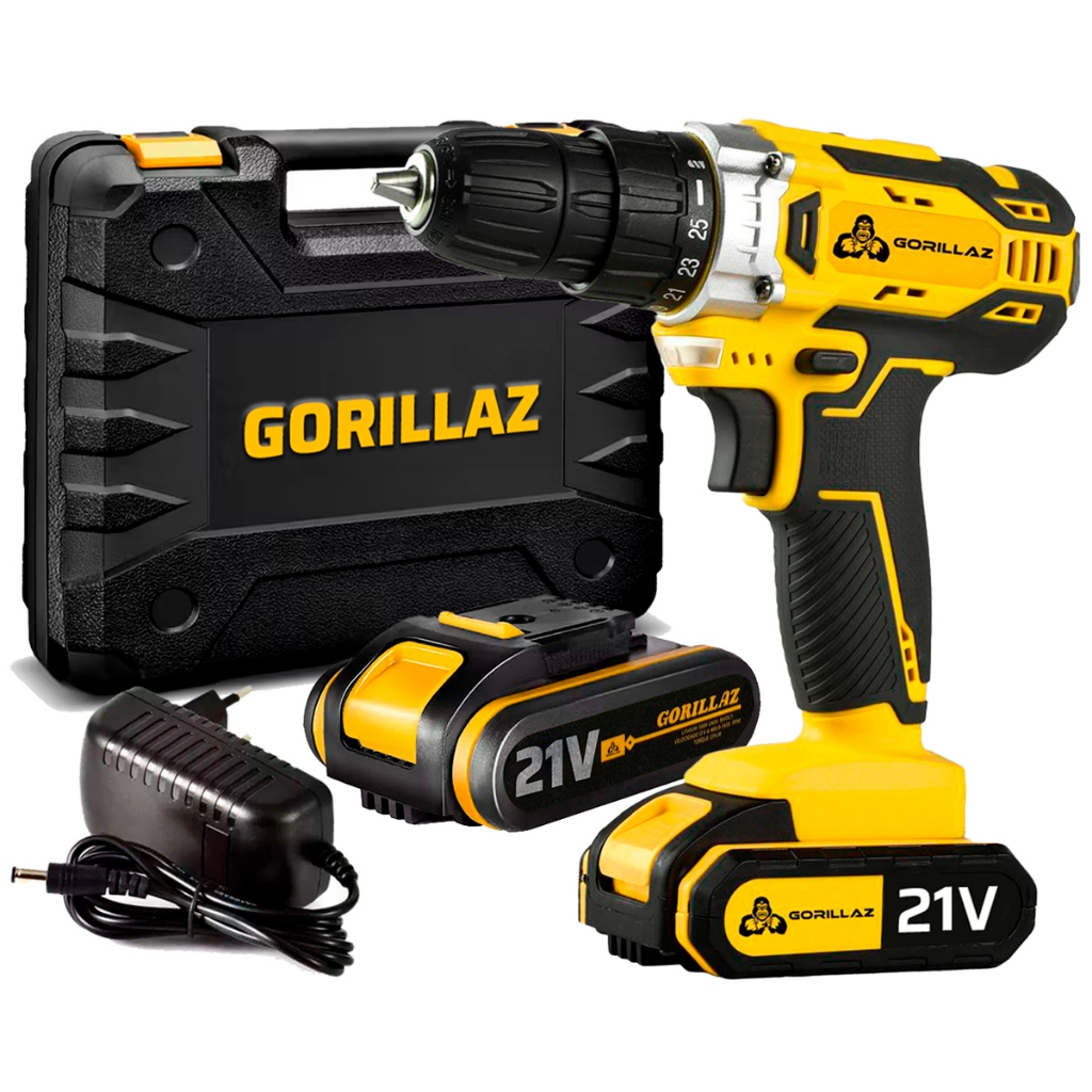 Parafusadeira Furadeira De Impacto 21v 2 Baterias 3/8 10mm Com Maleta Gorillaz