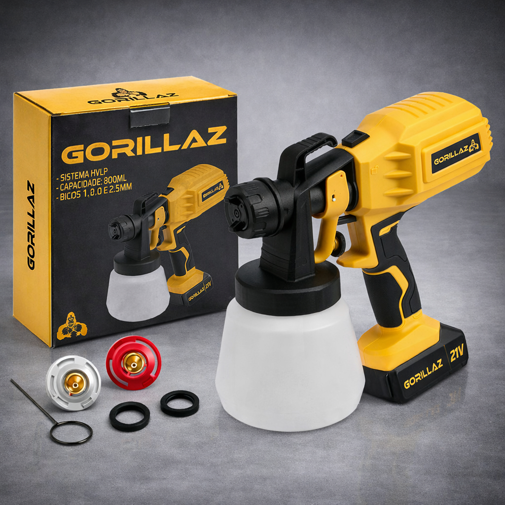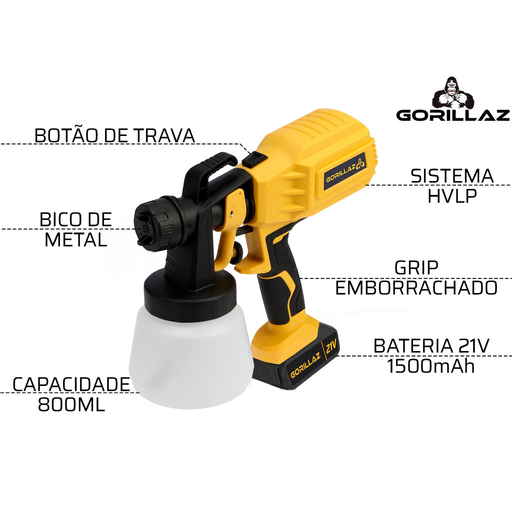 Pistola De Pintura Bivolt Hvlp A Bateria 21v Gpp-800 800ml Gorillaz