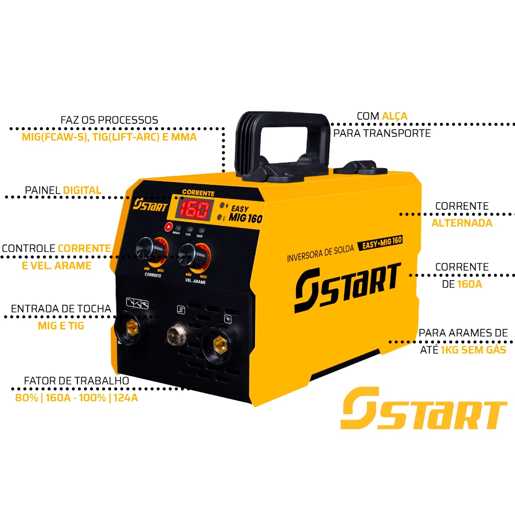 Maquina Inversora Solda Mig Tig Mma 160a Sem Gás 3 Em 1 Lift 220v + Acessórios